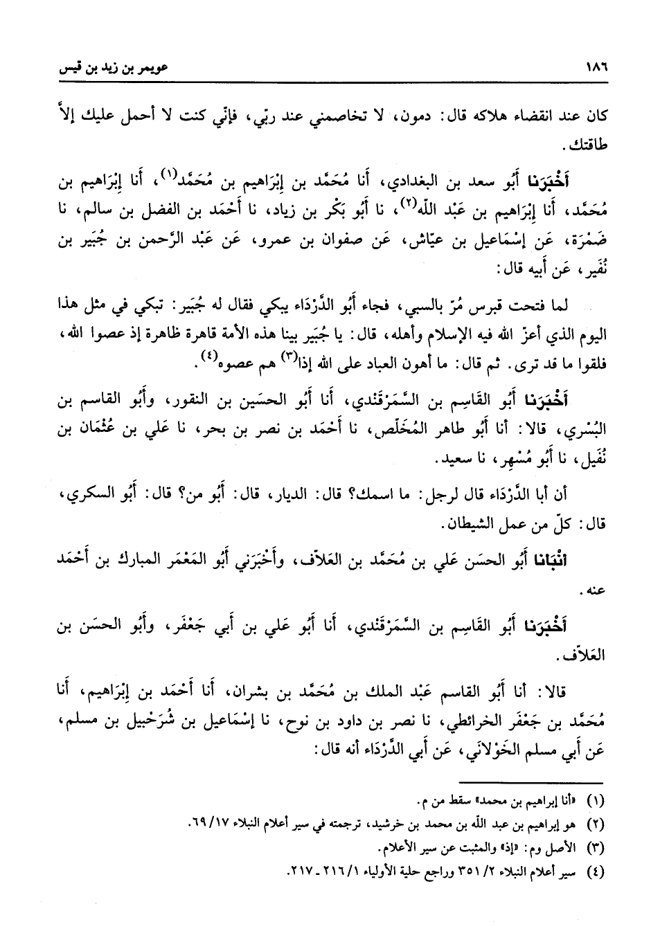 4 - سير اعلام النبلاء 2 / 351 وراجع حلية الاولياء 1 / 216 - 217