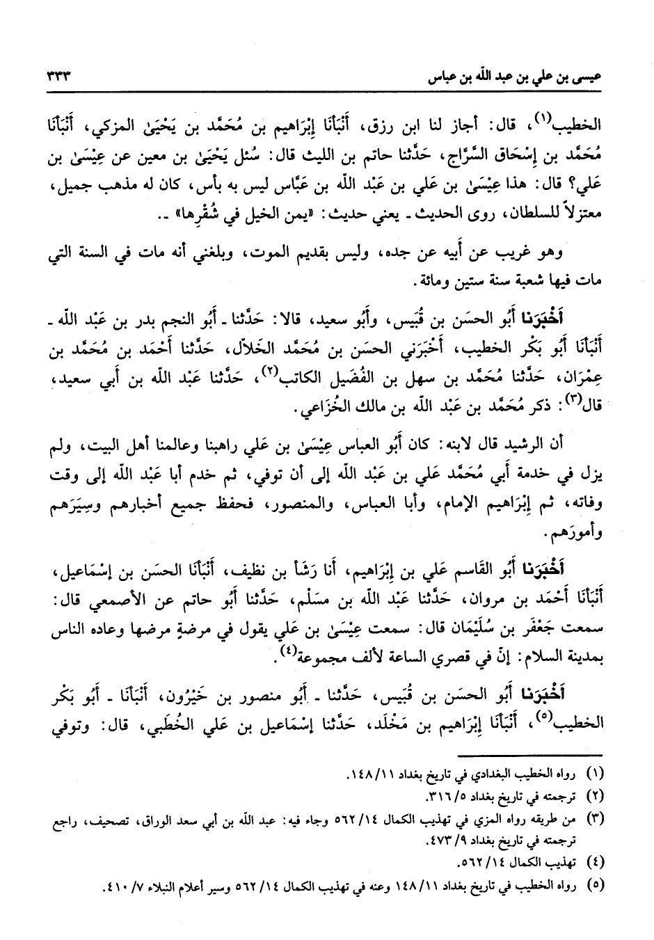 5 - رواه الخطيب في تاريخ بغداد 11 / 148 وعنه في تهذيب الكمال 14 / 562 وسير اعلام النبلاء 7 / 410