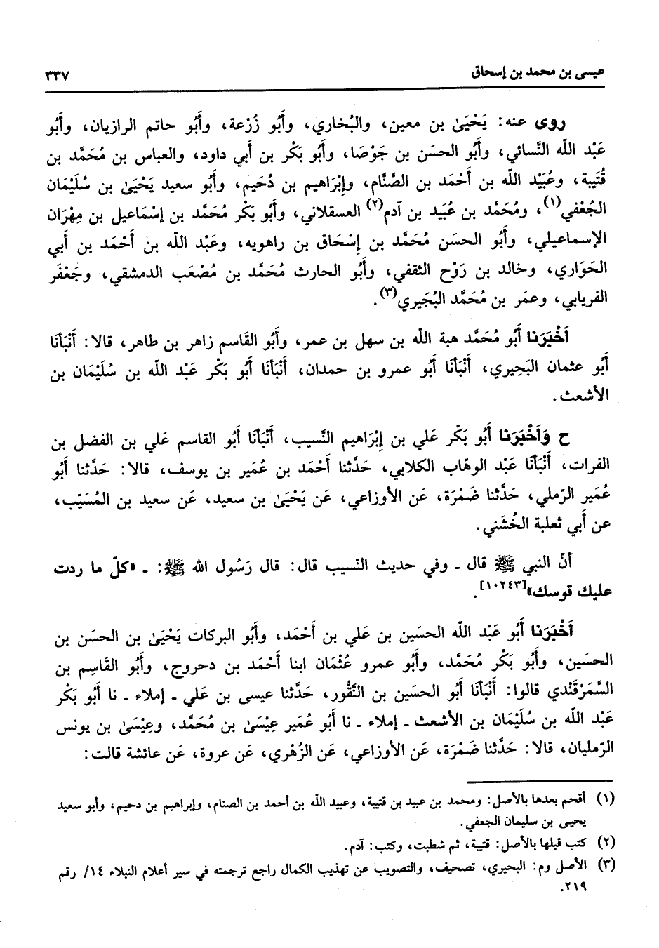 1 - أقحم بعدها بالاصل: ومحمد بن عبيد بن قتيبة وعبيد الله بن احمد بن احمد بن الصنام وإبراهيم بن دحيم وابو سعيد يحيى بن سليمان الجعفي