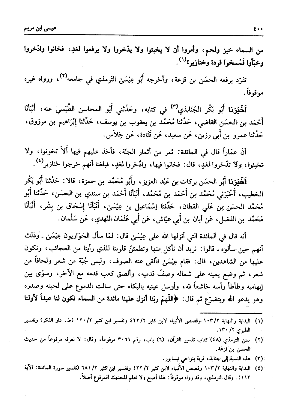 4 - البداية والنهاية 2 / 103 وقصص الانبياء لابن كثير 2 / 422 وتفسير ابن كثير 2 / 681 (تفسير المائدة: الآية 112