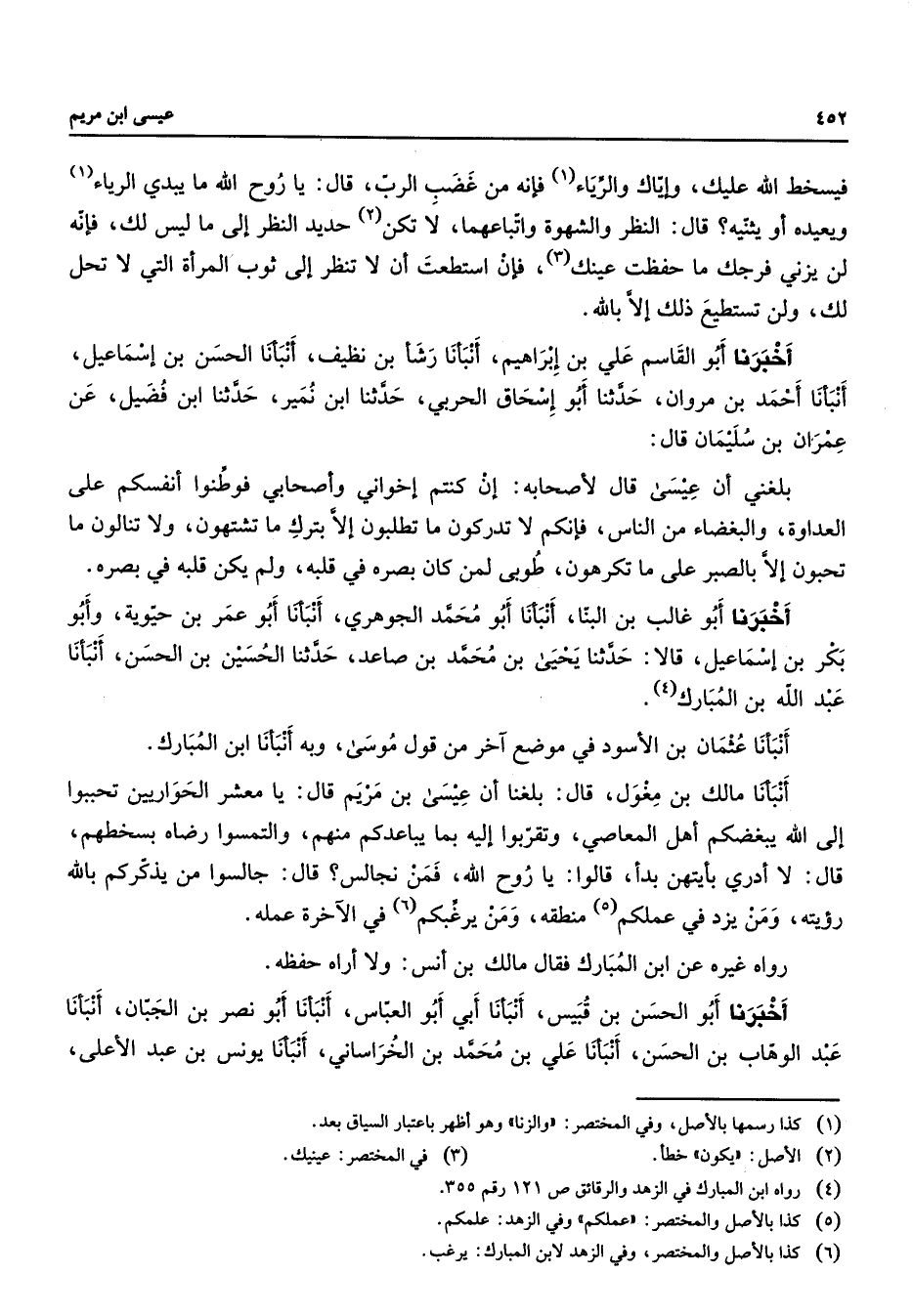 4 - رواه ابن المبارك في ازهد والرقائق ص 121 رقم 355
