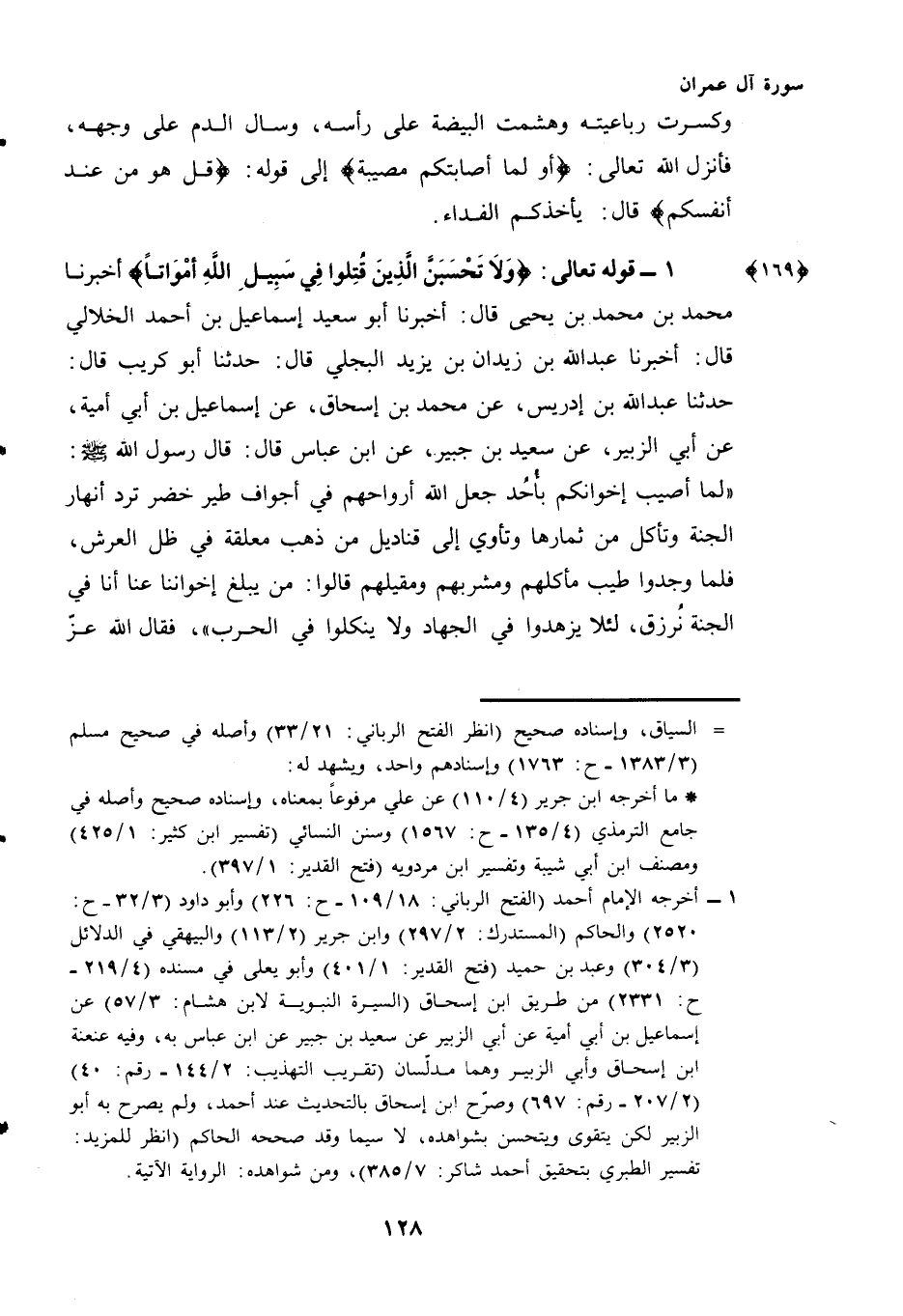 (¬1) - قَوْلُهُ تَعَالَى: {وَلَا تَحْسَبَنَّ الَّذِينَ قُتِلُوا فِي سَبِيلِ اللَّهِ أَمْوَاتًا} {169} .