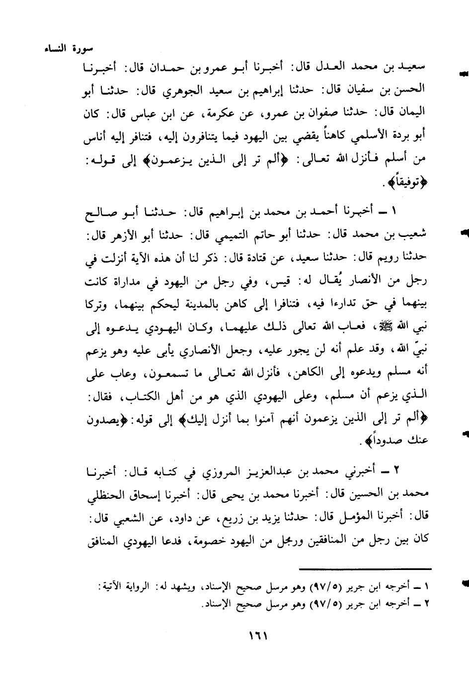 (¬2) - أَخْبَرَنِي مُحَمَّدُ بْنُ عَبْدِ الْعَزِيزِ الْمَرْوَزِيُّ فِي كِتَابِهِ قَالَ: أَخْبَرَنَا مُحَمَّدُ بْنُ الْحُسَيْنِ قَالَ: أَخْبَرَنَا مُحَمَّدُ بْنُ يَحْيَى قَالَ: أَخْبَرَنَا إِسْحَاقُ الْحَنْظَلِيُّ قَالَ: أَخْبَرَنَا الْمُؤَمَّلُ قَالَ: حَدَّثَنَا يَزِيدُ بْنُ زُرَيْعٍ، عَنْ دَاوُدَ، عَنِ الشَّعْبِيِّ قَالَ: كَانَ بَيْنَ رَجُلٍ مِنَ الْمُنَافِقِينَ وَرَجُلٍ مِنَ الْيَهُودِ خُصُومَةٌ،