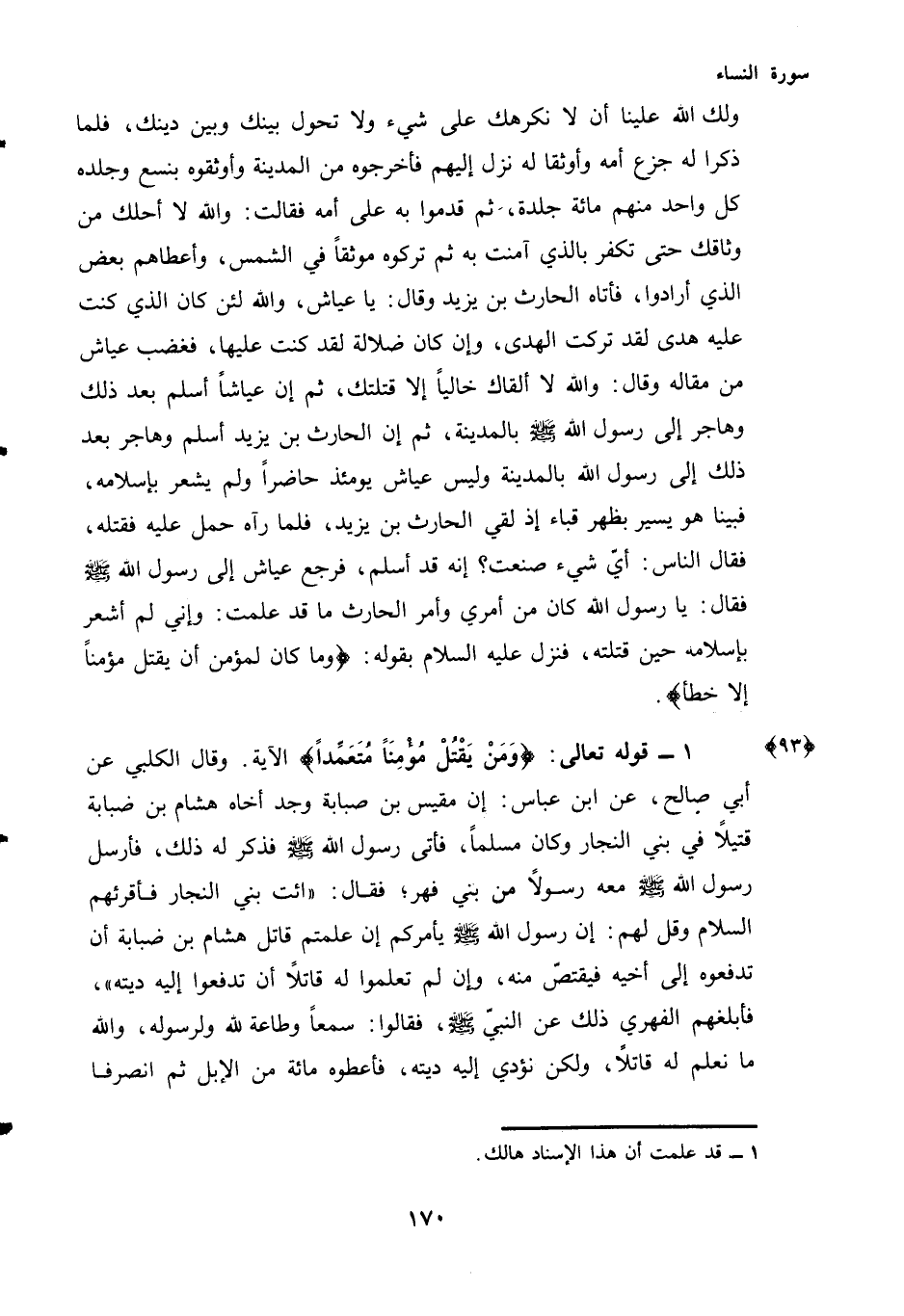 (¬1) - قَوْلُهُ تَعَالَى: {وَمَنْ يَقْتُلْ مُؤْمِنًا مُتَعَمِّدًا} الْآيَةَ {93}