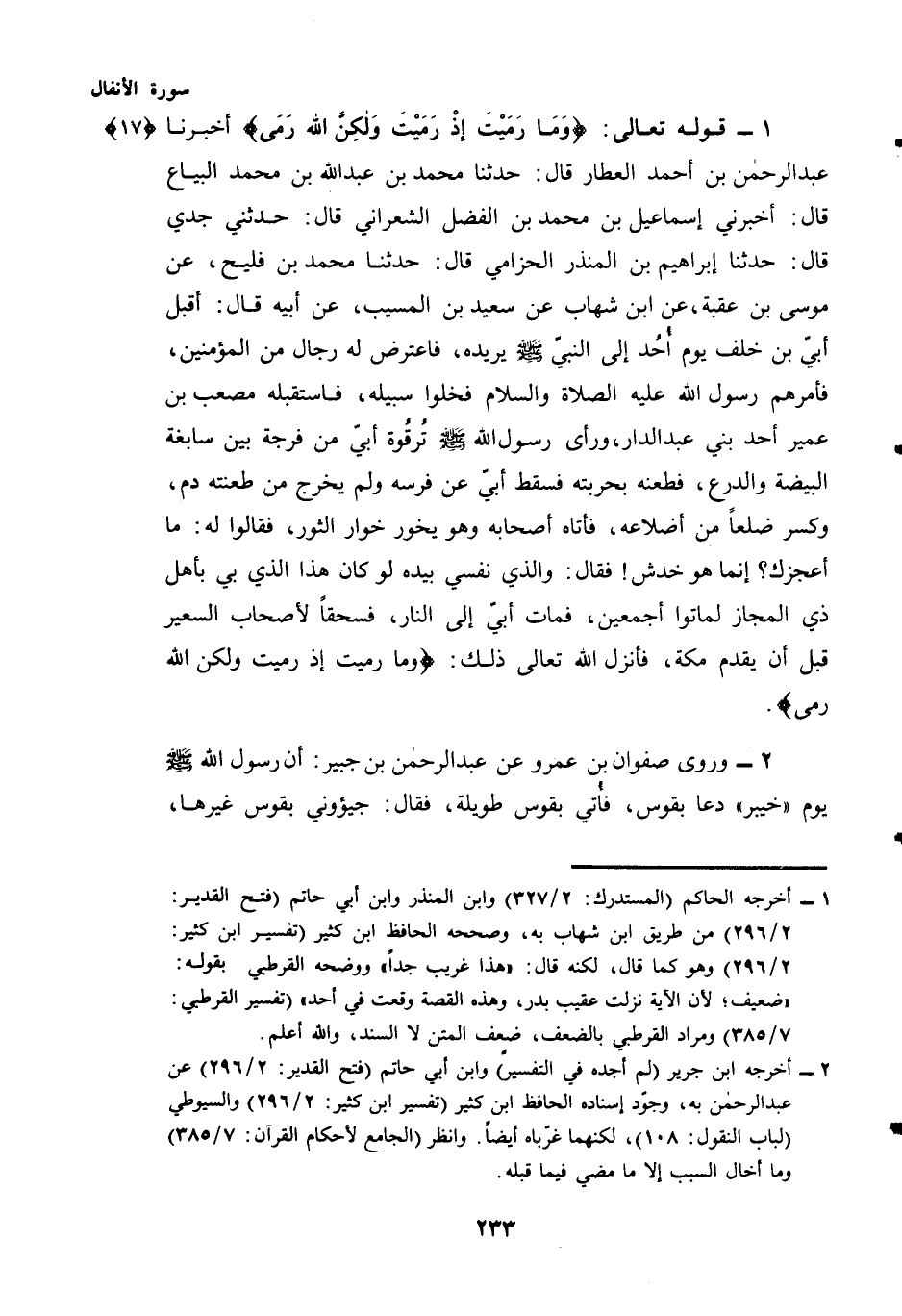 (¬2) - أخرجه ابن جرير (لم أجده في التفسير) وابن أبي حاتم (فتح القدير: 2/296) عن عبد الرحمن به، وجوّد إسناده الحافظ ابن كثير (تفسير ابن كثير: 2/296) والسيوطي (لباب النقول: 108) ، لكنهما غرّباه أيضا. وانظر (الجامع لأحكام القرآن: 7/385) وما أخال السبب إلا ما مضي فيما قبله.