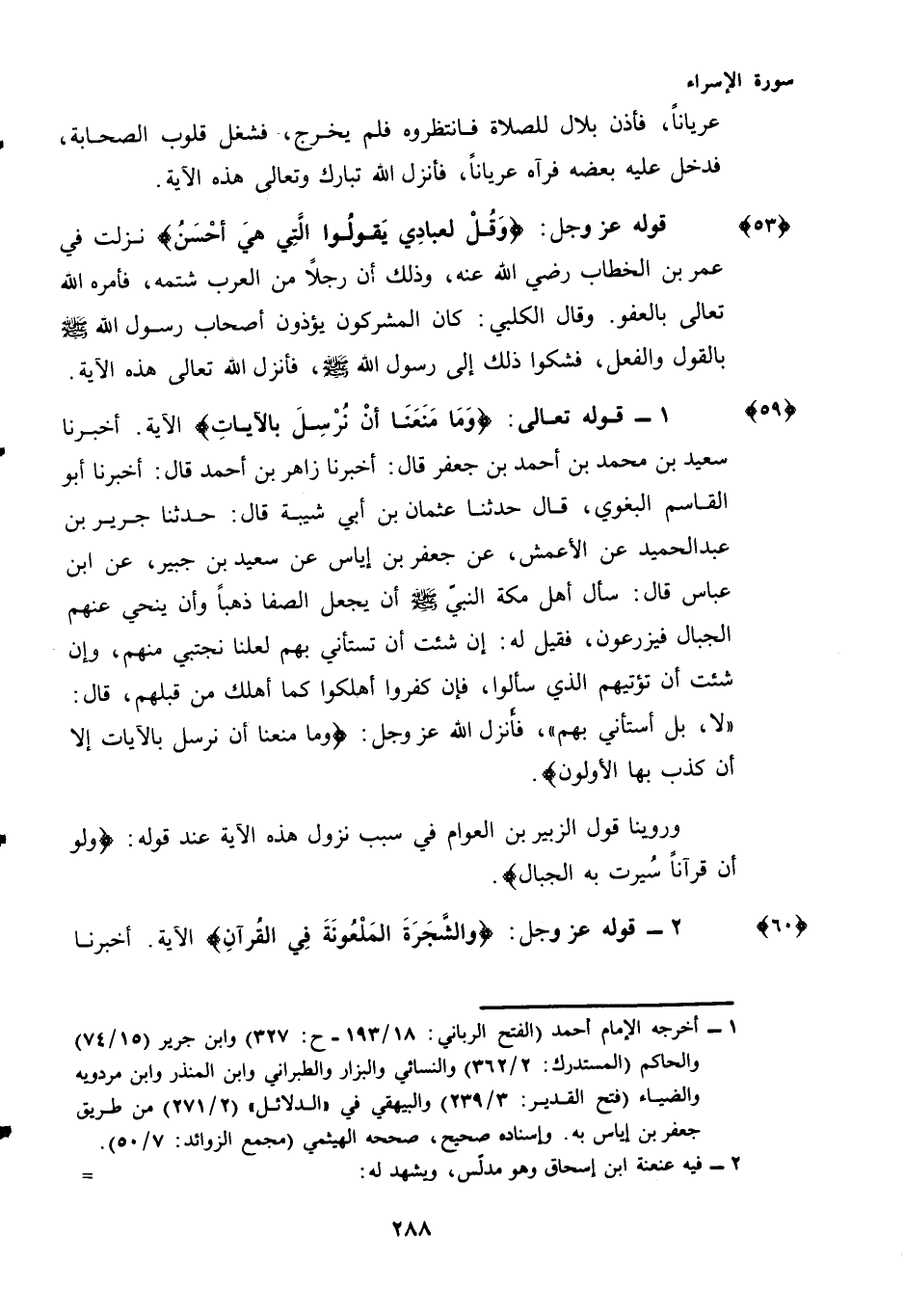 وَرَوَيْنَا قَوْلَ الزُّبَيْرِ بْنِ الْعَوَّامِ فِي سَبَبِ نُزُولِ هَذِهِ الْآيَةِ عِنْدَ قَوْلِهِ: {وَلَوْ أَنَّ قُرْآنًا سُيِّرَتْ بِهِ الْجِبَالُ}