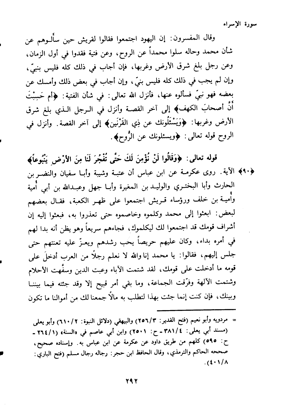 وَقَالَ الْمُفَسِّرُونَ: إِنَّ الْيَهُودَ اجْتَمَعُوا فَقَالُوا لِقُرَيْشٍ حِينَ سَأَلُوهُمْ عَنْ شَأْنِ مُحَمَّدٍ وَحَالِهِ سَلُوا مُحَمَّدًا عَنِ الرُّوحِ، وَعَنْ فِتْيَةٍ فُقِدُوا فِي أَوَّلِ الزَّمَانِ، وَعَنْ رَجُلٍ بَلَغَ شَرْقَ الْأَرْضِ وَغَرْبَهَا، فَإِنْ أَجَابَ فِي ذَلِكَ كُلِّهِ فَلَيْسَ بِنَبِيٍّ، وَإِنْ لَمْ يُجِبْ فِي ذَلِكَ كُلِّهِ فَلَيْسَ بِنَبِيٍّ، وَإِنْ أَجَابَ فِي بَعْضِ ذَلِكَ وَأَمْسَكَ عَنْ بَعْضِهِ فَهُوَ نَبِيٌّ فَسَأَلُوهُ عَنْهَا، فَأَنْزَلَ اللَّهُ تَعَالَى: فِي شَأْنِ