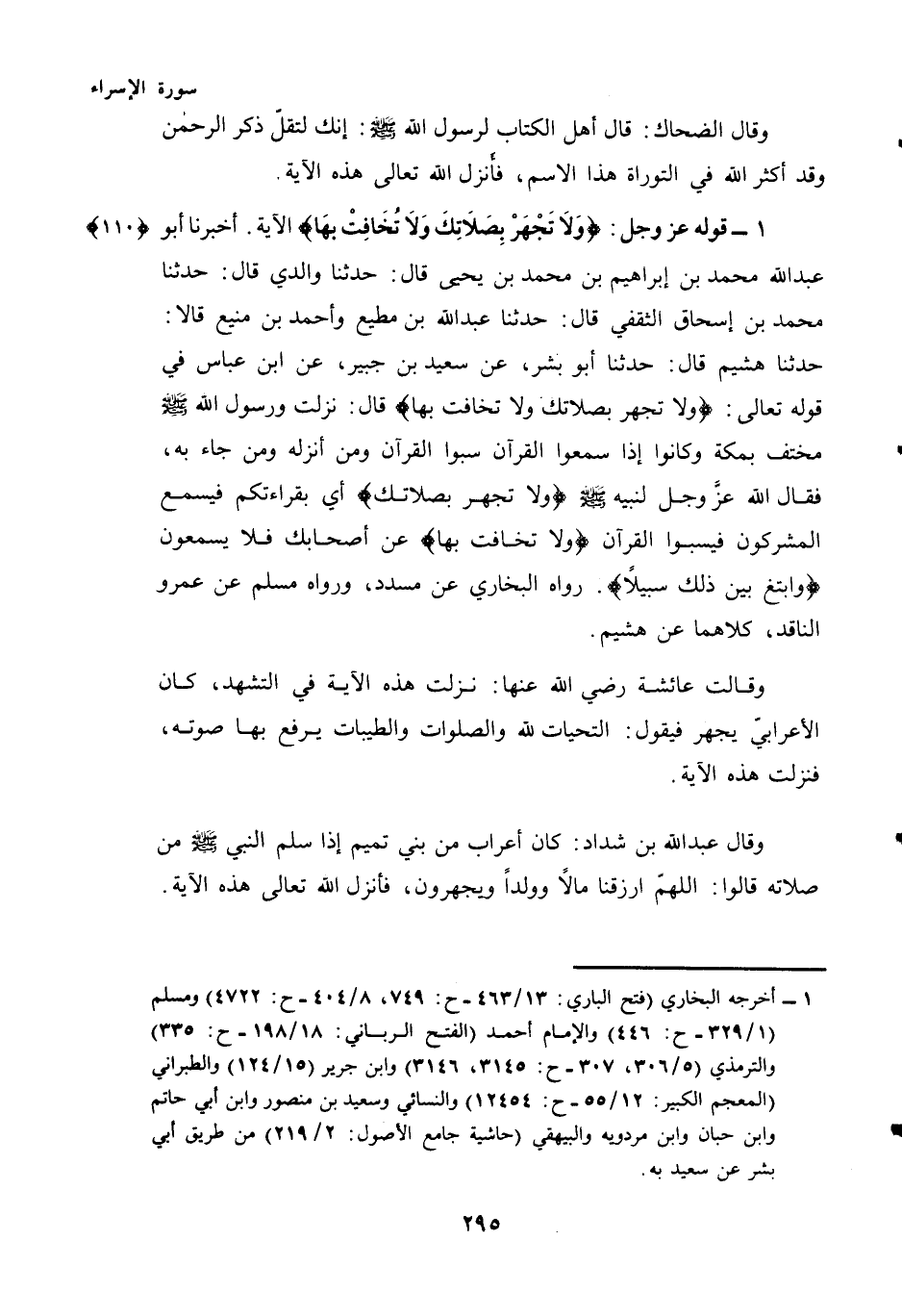 (¬1) - قَوْلُهُ - عَزَّ وَجَلَّ - {وَلَا تَجْهَرْ بِصَلَاتِكَ وَلَا تُخَافِتْ بِهَا} الْآيَةَ {110} .