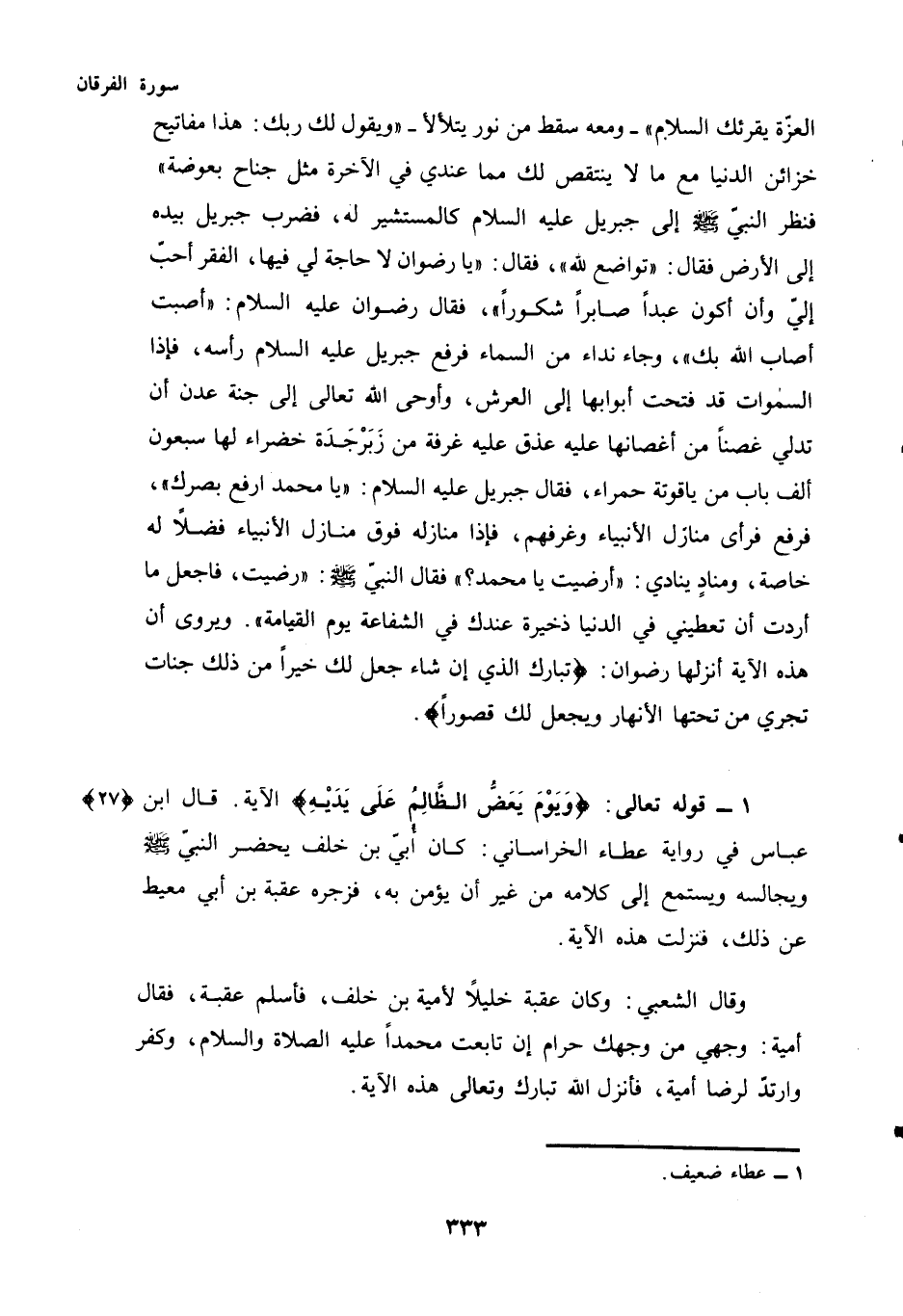 وَقَالَ الشَّعْبِيُّ: وَكَانَ عُقْبَةُ خَلِيلًا لِأُمَيَّةَ بْنِ خَلَفٍ، فَأَسْلَمَ عُقْبَةُ، فَقَالَ أُمَيَّةُ: وَجْهِي مِنْ وَجْهِكَ حَرَامٌ إِنْ تابعت محمدًا عليه الصلاة والسلام، وَكَفَرَ وَارْتَدَّ لِرِضَا أُمَيَّةَ، فَأَنْزَلَ اللَّهُ تَبَارَكَ وَتَعَالَى هَذِهِ الْآيَةَ.