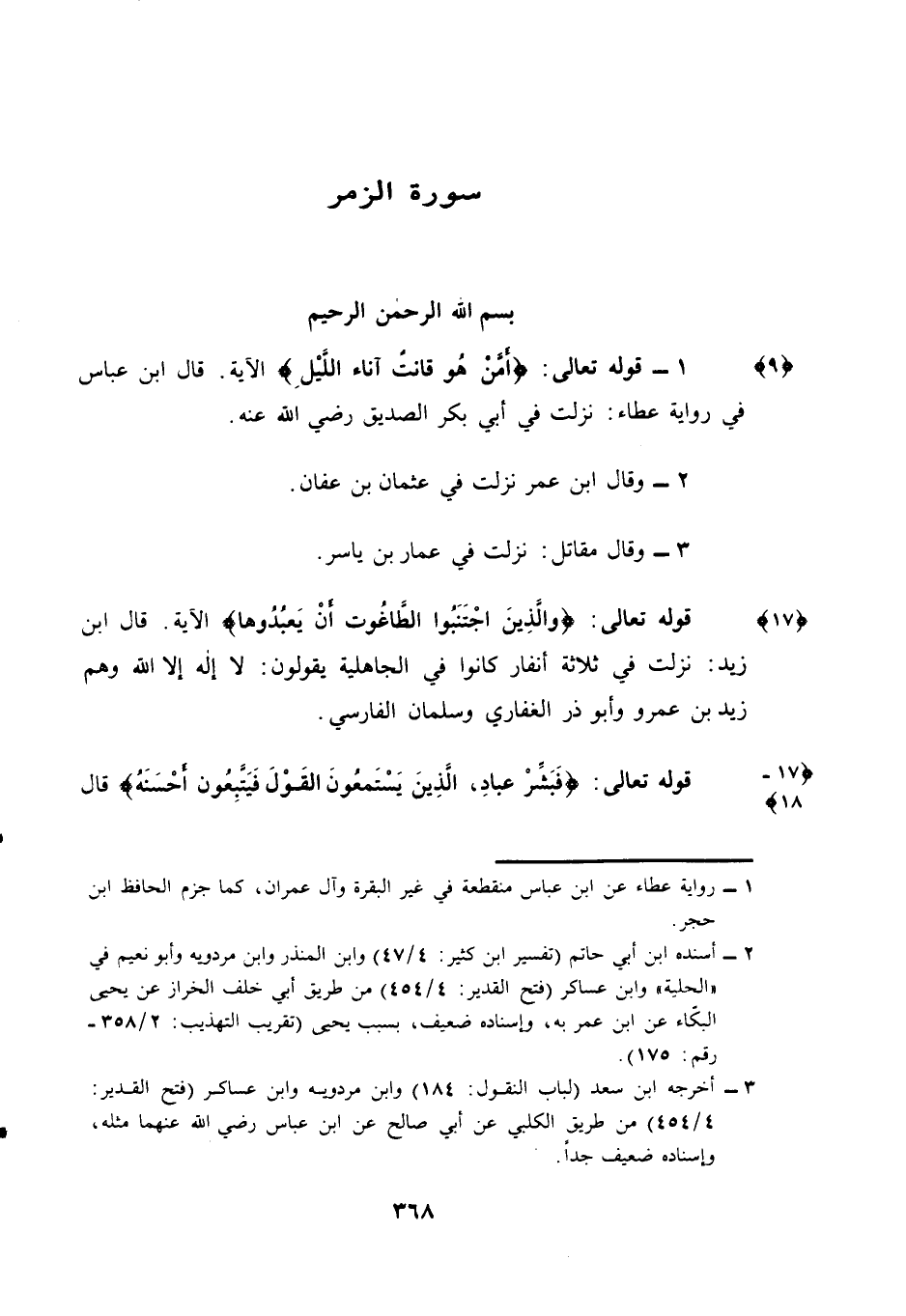 (¬1) - قَوْلُهُ تَعَالَى: {أَمْ مَنْ هُوَ قَانِتٌ آنَاءَ اللَّيْلِ} الْآيَةَ {9} .