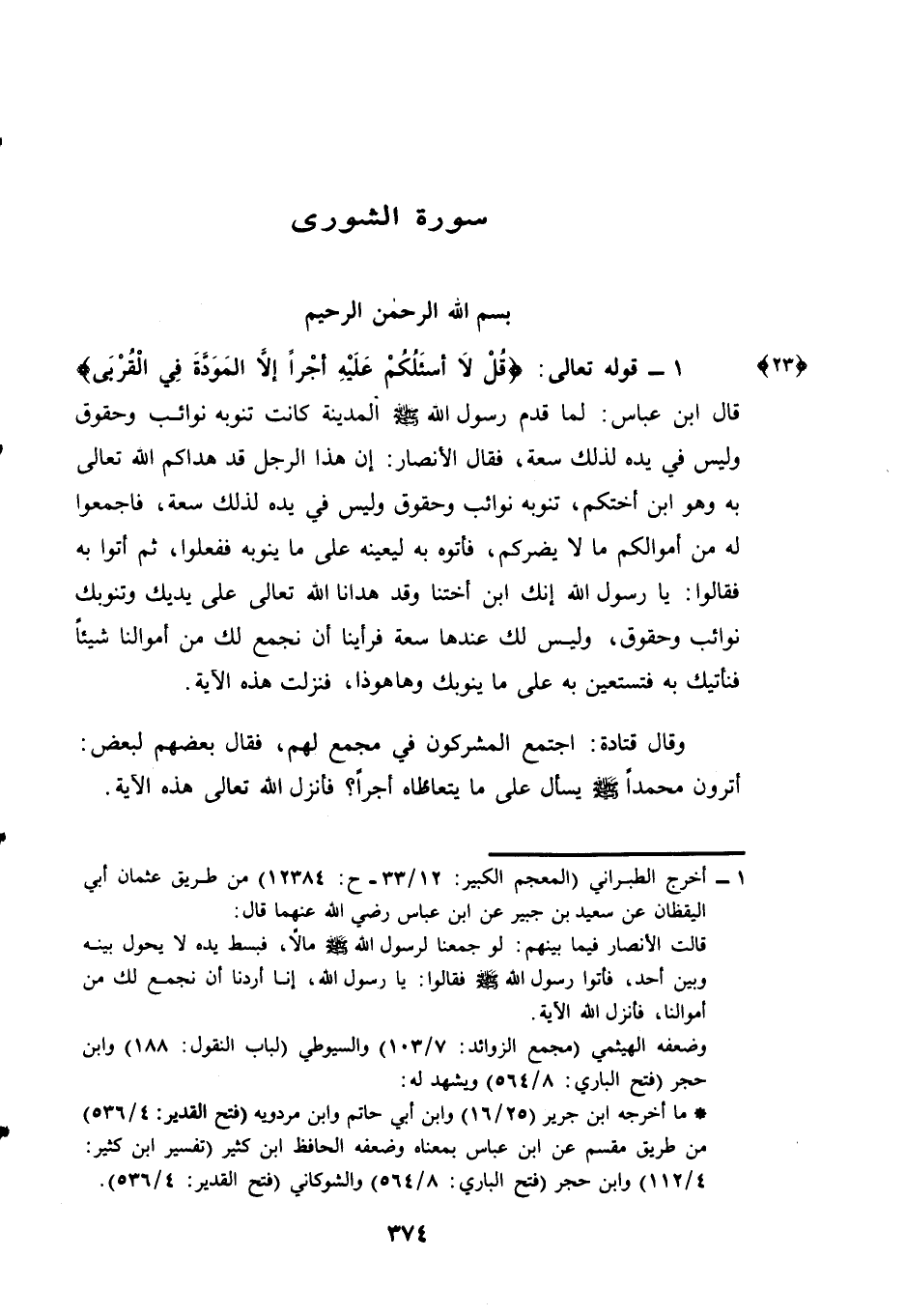(¬1) - قَوْلُهُ تَعَالَى: {قُلْ لَا أَسْأَلُكُمْ عَلَيْهِ أَجْرًا إِلَّا الْمَوَدَّةَ فِي الْقُرْبَى} {23} .