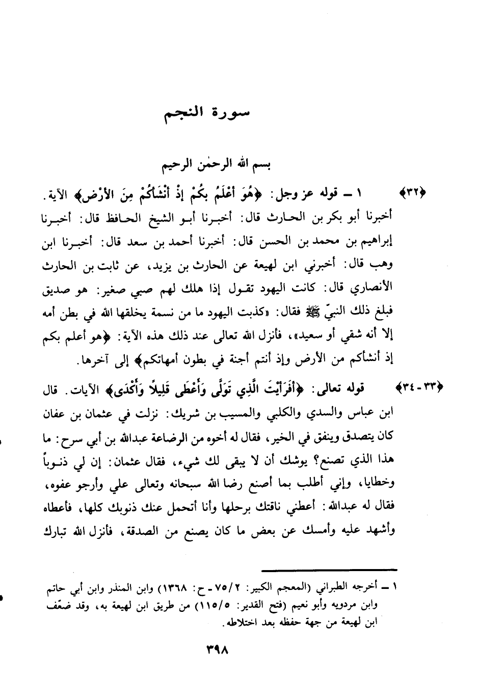 (¬1) - أخرجه الطبراني (المعجم الكبير: 2/75 - ح: 1368) وابن المنذر وابن أبي حاتم وابن مردويه وأبو نعيم (فتح القدير: 5/115) من طريق ابن لهيعة به, وقد ضعّف ابن لهيعة من جهة حفظه بعد اختلاطه.