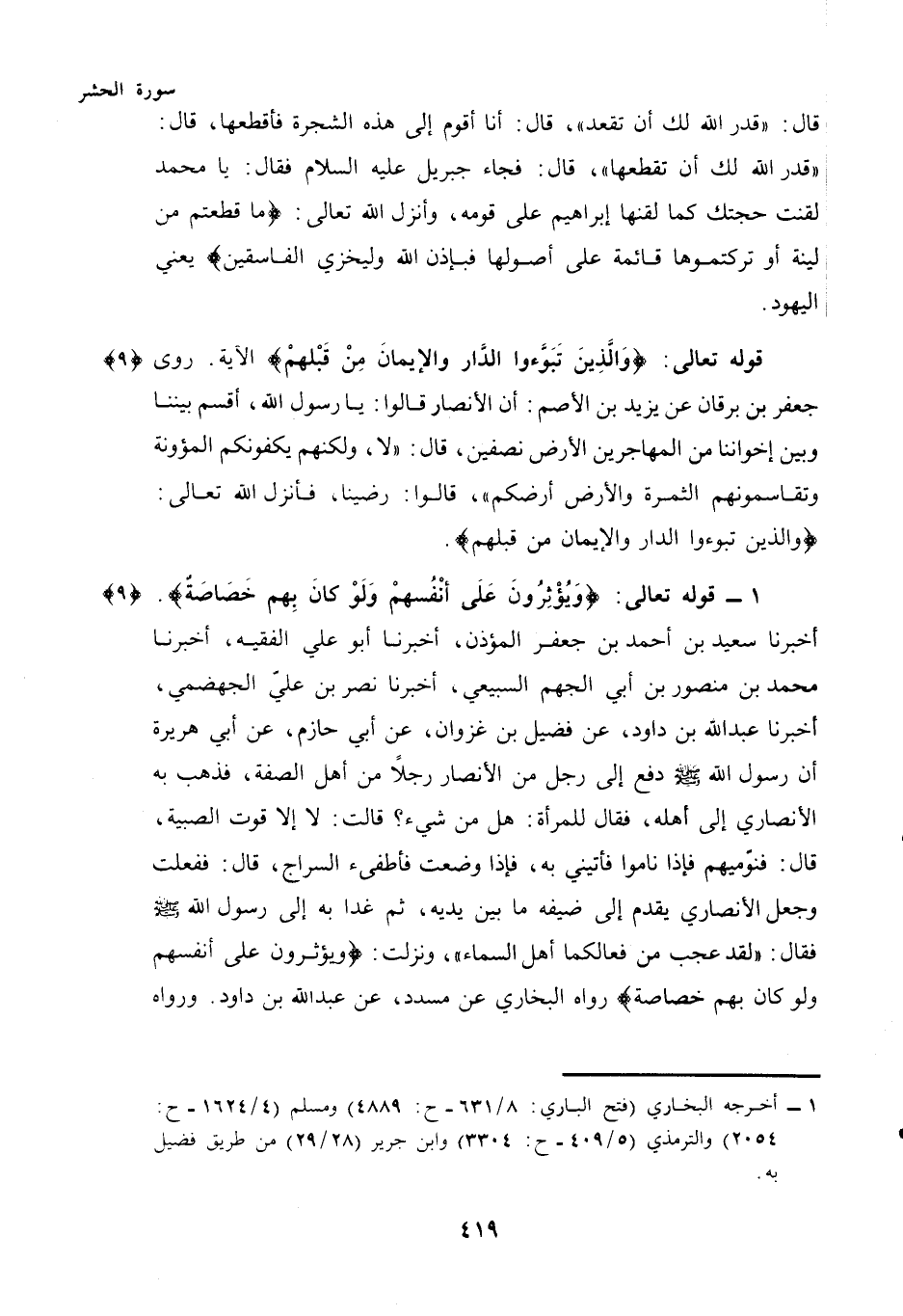 (¬1) - أخرجه البخاري (فتح الباري: 8/631 - ح: 4889) ومسلم (4 /1624 - ح: 2054) والترمذي (5 / 409 - ح: 3304) وابن جرير (28/29) من طريق فضيل به.