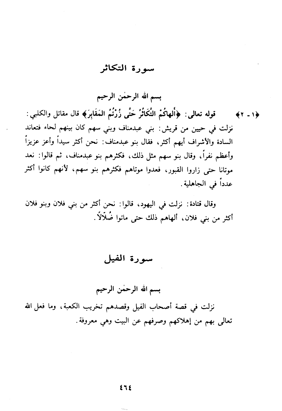 نَزَلَتْ فِي قِصَّةِ أَصْحَابِ الْفِيلِ وَقَصْدِهِمْ تَخْرِيبَ الْكَعْبَةِ، وَمَا فَعَلَ اللَّهُ تَعَالَى بِهِمْ مِنْ إِهْلَاكِهِمْ وَصَرْفِهِمْ عَنِ الْبَيْتِ وَهِيَ مَعْرُوفَةٌ.