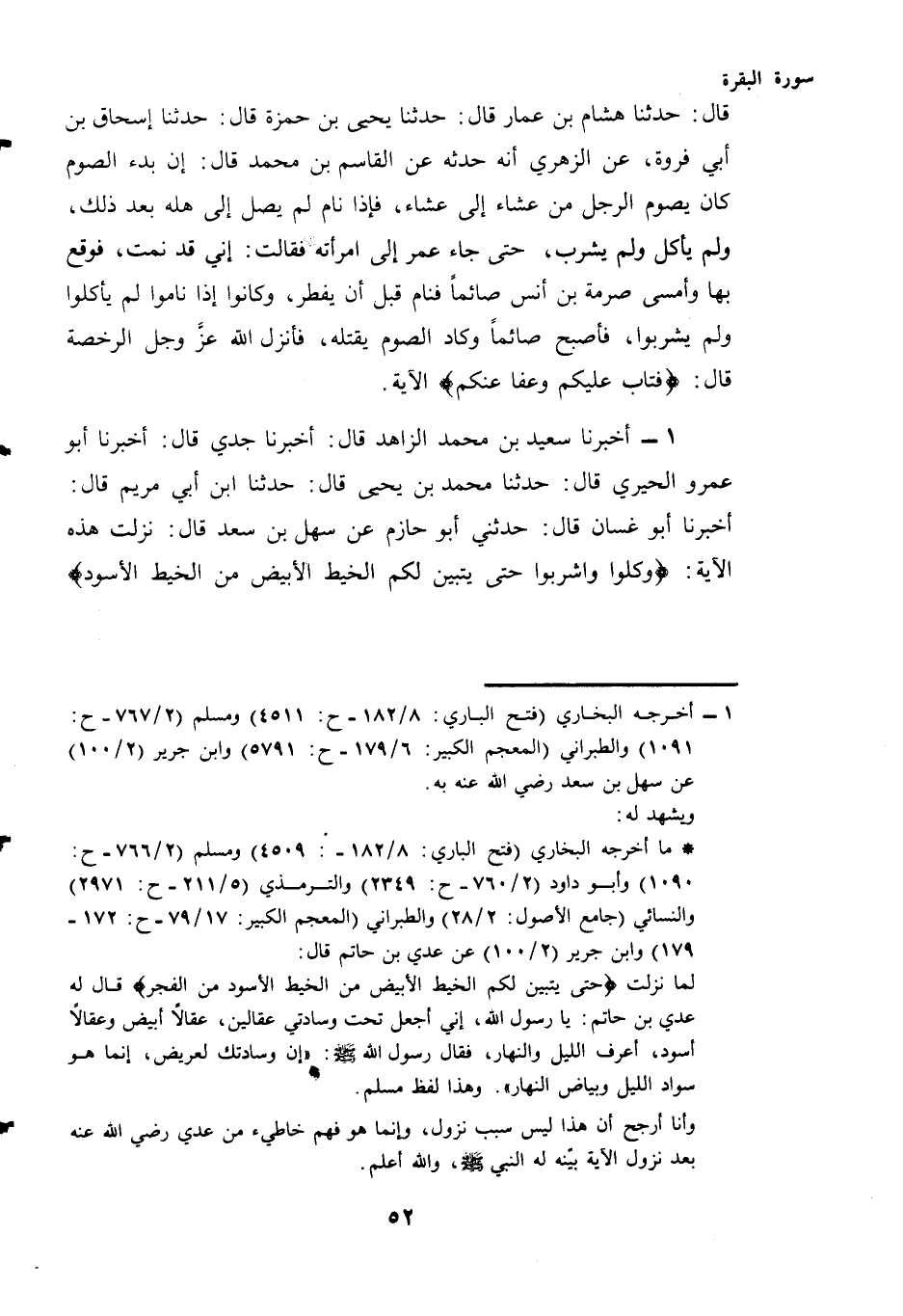 وأنا أرجح أن هذا ليس سبب نزول وإنما هو فهم خاطئ من عدي رضي الله عنه بعد نزول الآية بيّنه له النبي صَلَّى اللهُ عَلَيْهِ وَسَلَّمَ، والله أعلم.