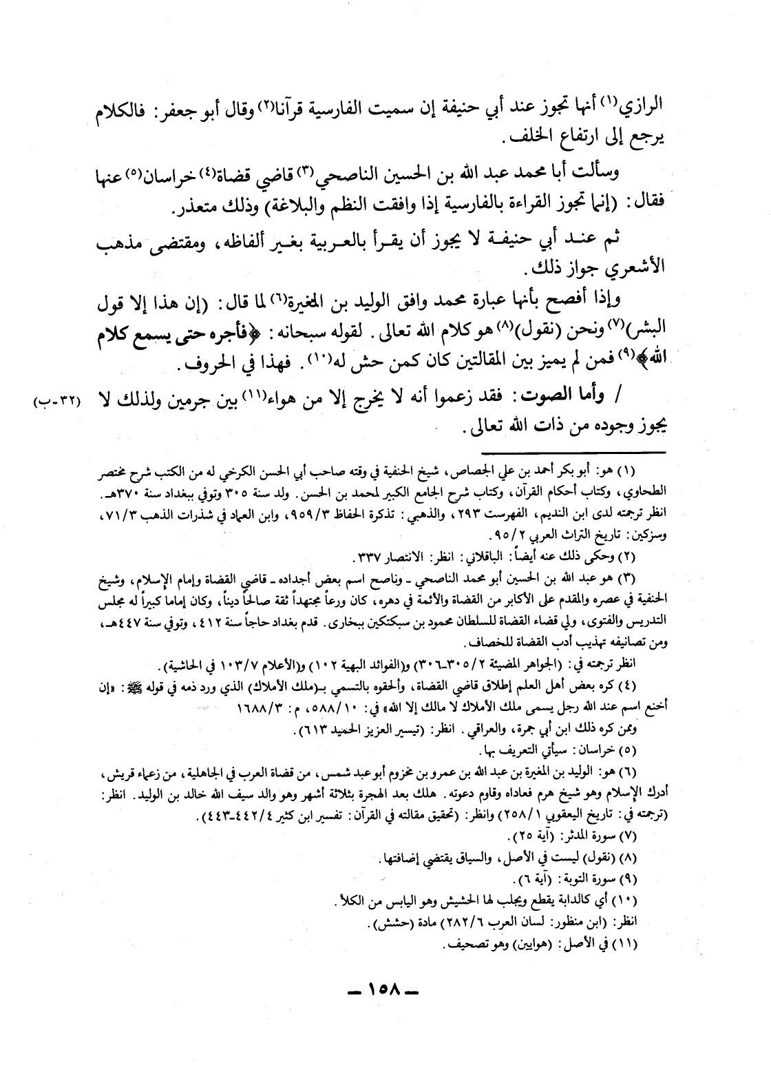 ثم قد أطلق الأشعري أن هذه التسميات لم يستحقها كلام الله / في الأزل، وإنما هي تسميات للعبارات المختلفة التي نزلت في الأزمان المتغايرة، وكلّ ذلك محدث فبين أن التوراة اسم الكتاب بالسريانية، وأنه