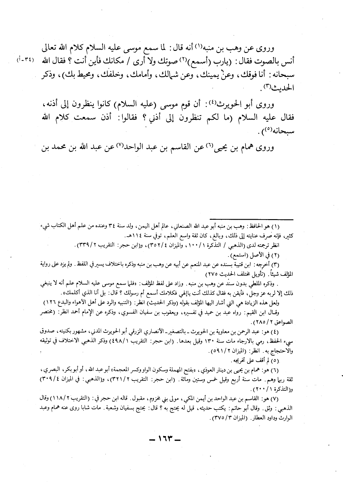 2 أوضح المؤلف في كتاب الإبانة أنّ ذلك حقيقة مذهبهم وإن كانوا يتحاشون التصريح به؛ لئلا يشنع عليهم. انظر "النص الذي اقتبسه ابن تيمية عن "الإبانة" في كتابه "درء تعارض العقل والنقل 2/ 90- ا 9".