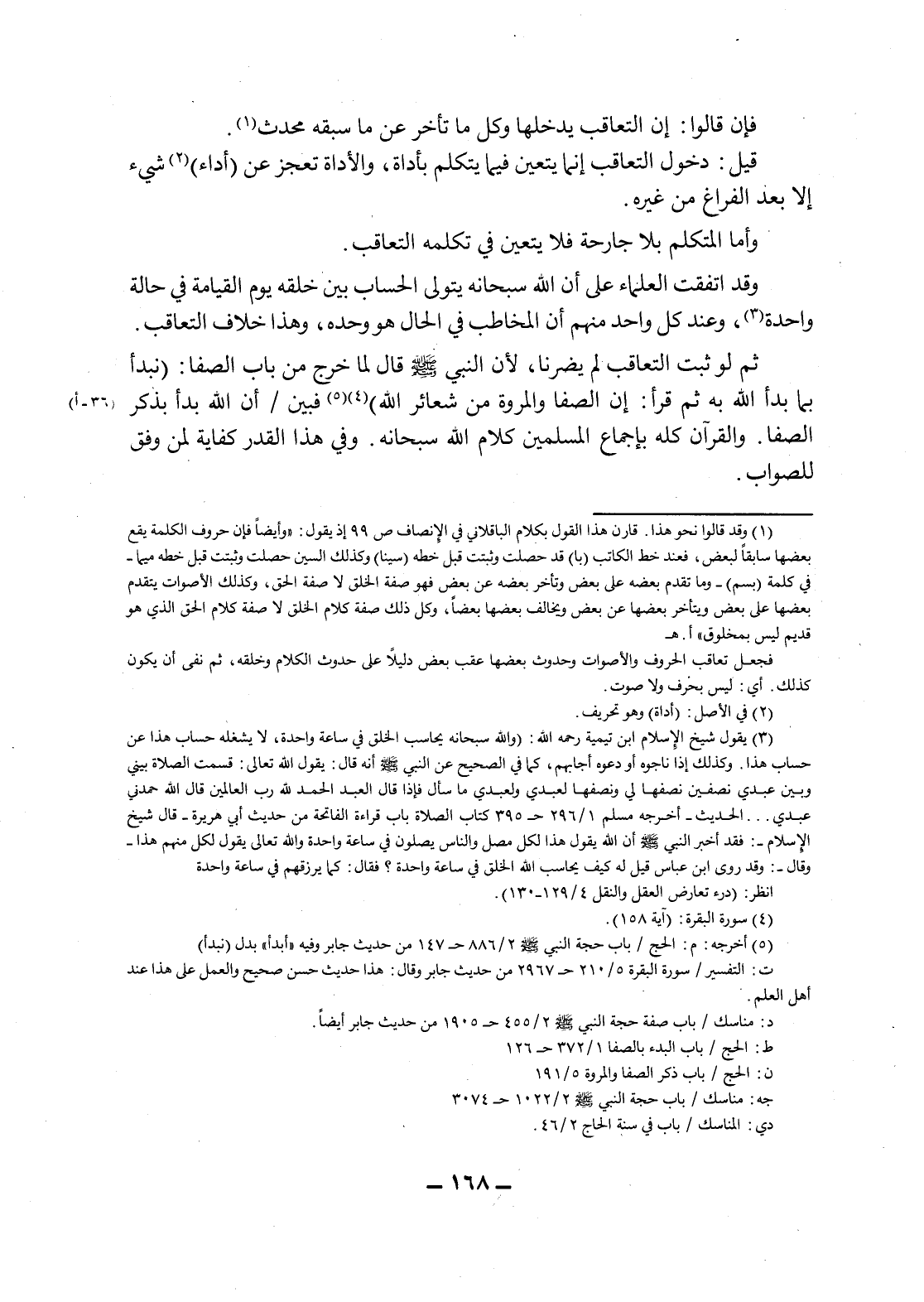 4 لأنه قائم بذات الله عز وجل لا يفارقها. "العقيدة النظامية للجويني ص29 وما بعدها".