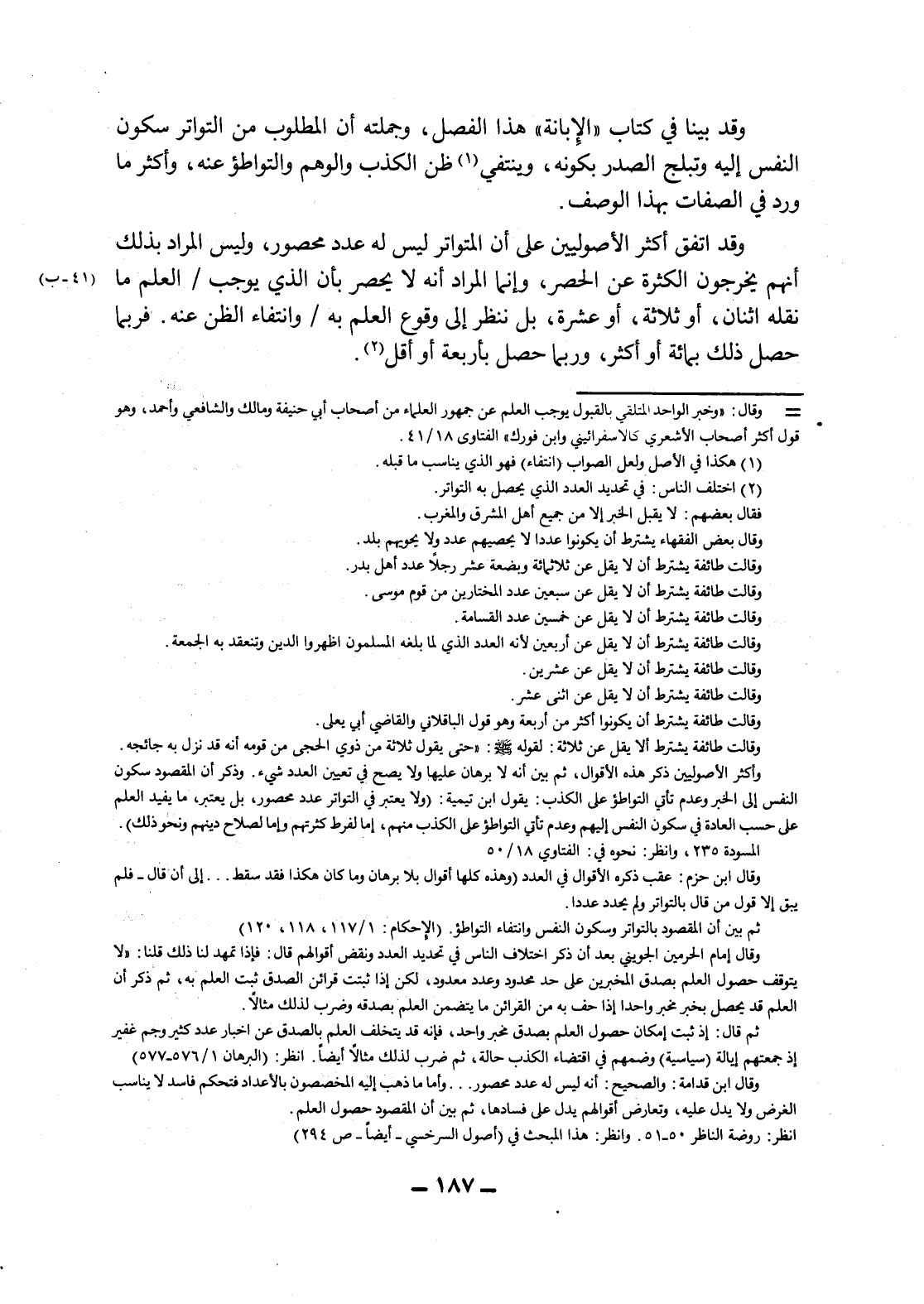 أنس رحمة الله عليه1 وقد رواه غير وحد مع ابن نافع عن مالك بن أنس، وكذلك رواه الثقات عن سفيان بن سعيد الثوري23 وروي نحوه عن/ الأوزاعي45 وهؤلاء أئمة الآفاق. واعتقاد أهل