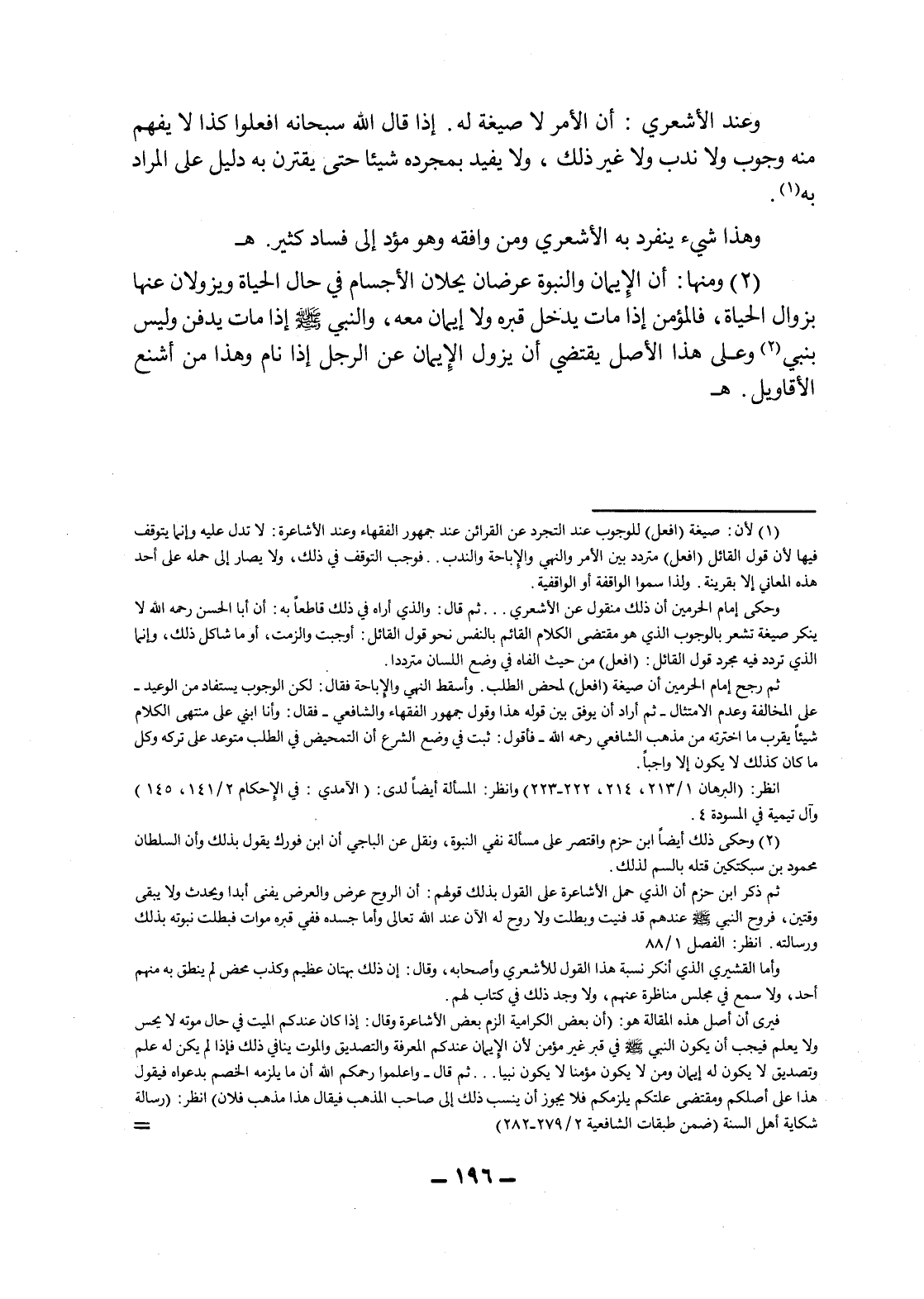 2 النص ما بين الحاصرتين. اقتبسه شيخ الإسلام ابن تيمية عن هذه الرسالة في كتابه بيان تلبيس الجهمية. انظر: 1/ 446.