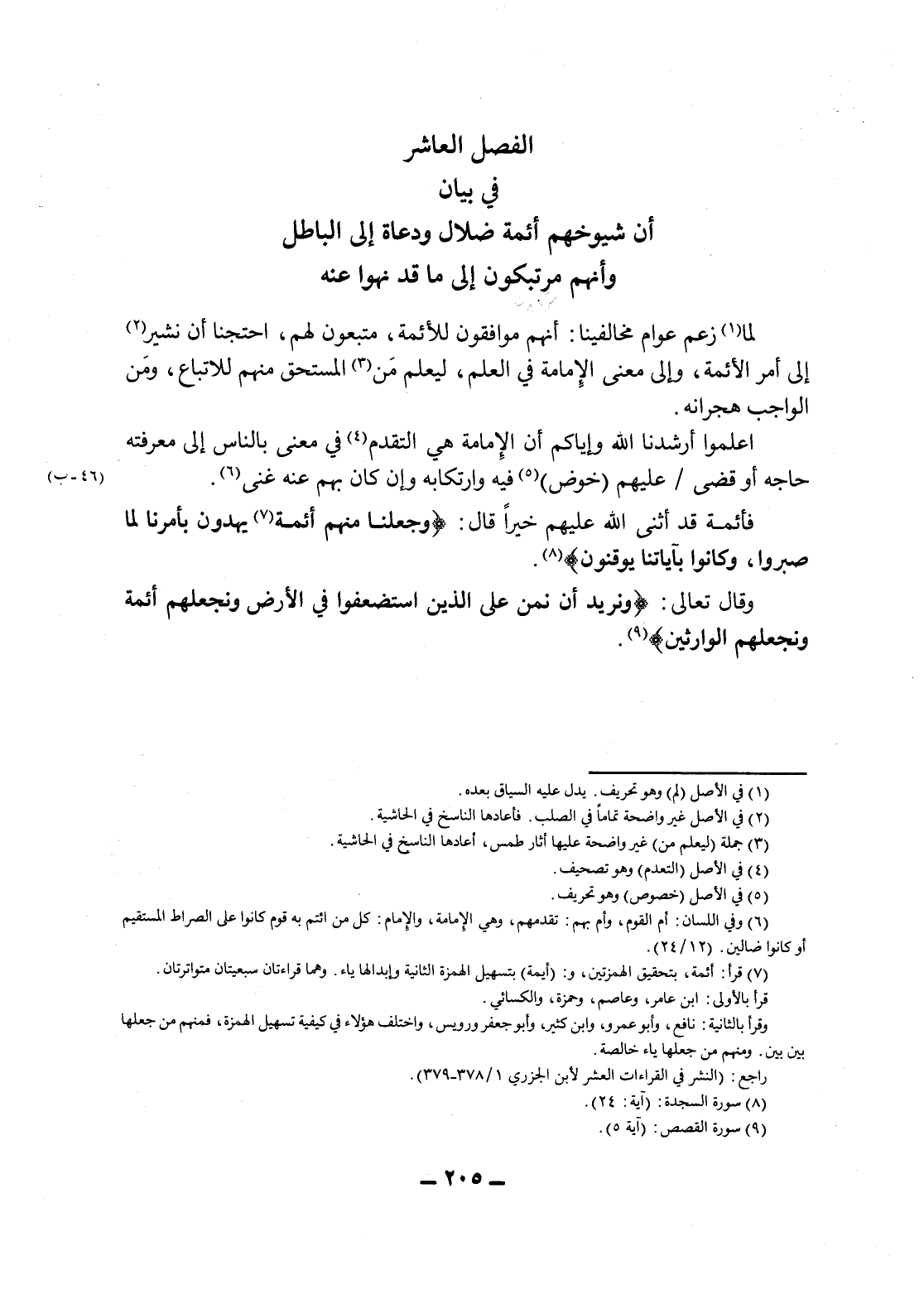4 انظر: (شرح الأصول الخمسة ص528 حيث زعم أن هذا القرآن كلام الله مخلوق وأنه هذا الذي يتلى ويسمع. ثم يقرر في ص 586 – 587 أن القرآن معجز وأن التحدي واقع بهذه الآيات المسموعة.