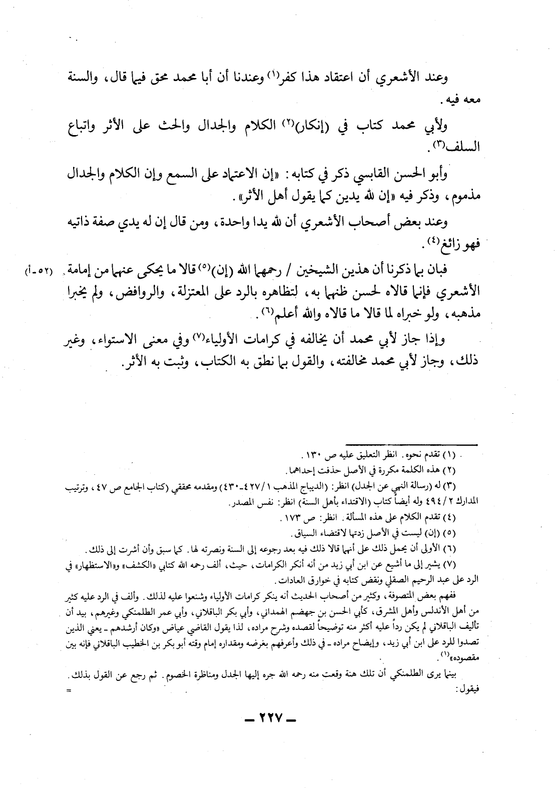واليهود، والنصارى، مقرون بأن لله كلاماً، ومختلفون في نفي الخلق عنه وإثباته كاختلاف المسلمين، ومجمعون على أن الكلام لا يكون إلا حرفاً وصوتاً. فإن قال قائل: إن أكثر ما ذكرت في هذا الفصل مما يتعلق / بالشاهد والله تعالى بخلاف المشاهدات. فوجب أن لا يكون كلامه حرفاً وصوتاً، إلا أن يأتي نص من الكتاب أو إجماع من الأمة، أو خبر من أخبار التواتر بأن كلام الله سبحانه حرف وصوت.