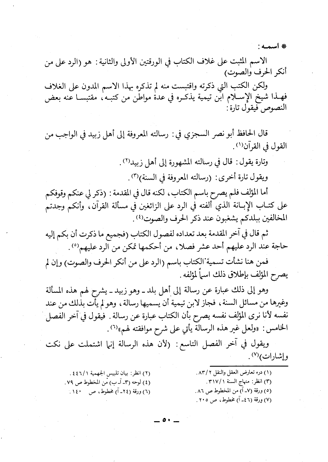 كتاب رسالة السجزي إلى أهل زبيد في الرد على من أنكر الحرف والصوت