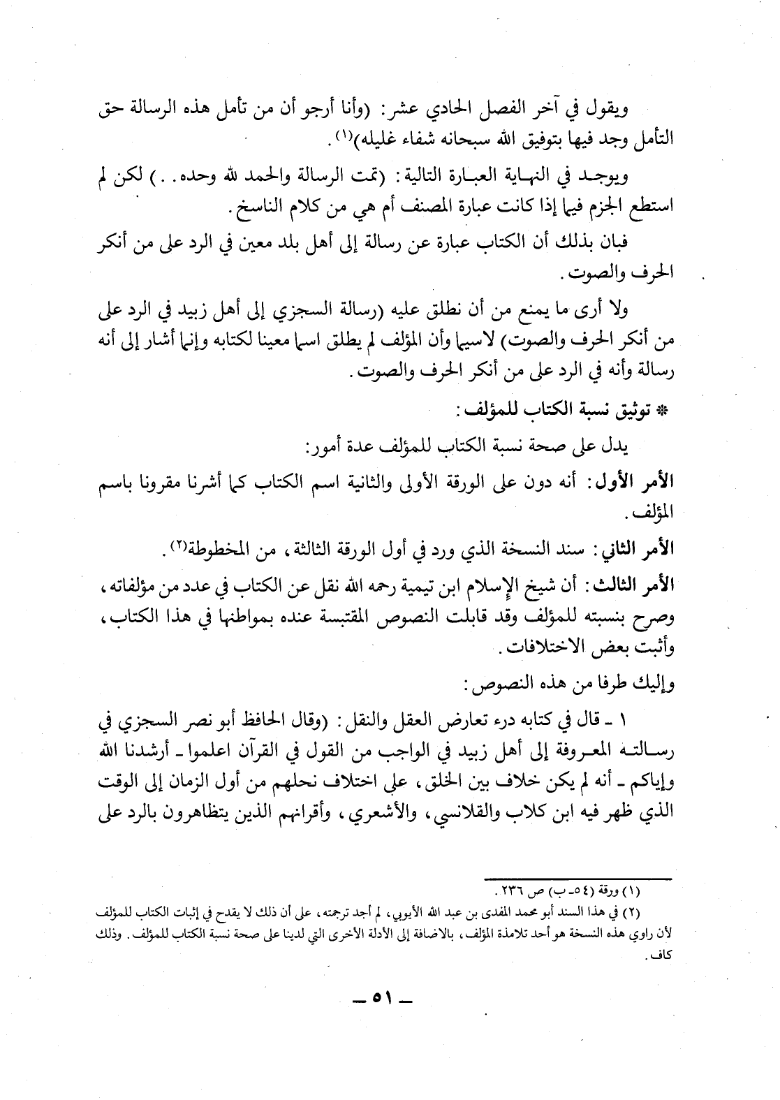كتاب رسالة السجزي إلى أهل زبيد في الرد على من أنكر الحرف والصوت