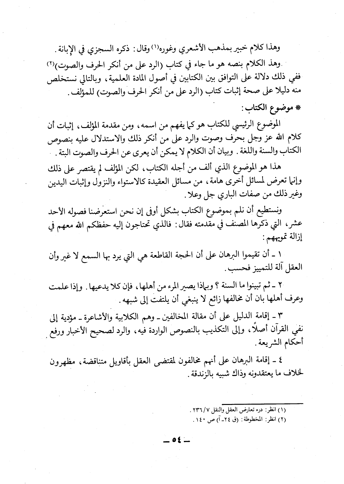كتاب رسالة السجزي إلى أهل زبيد في الرد على من أنكر الحرف والصوت