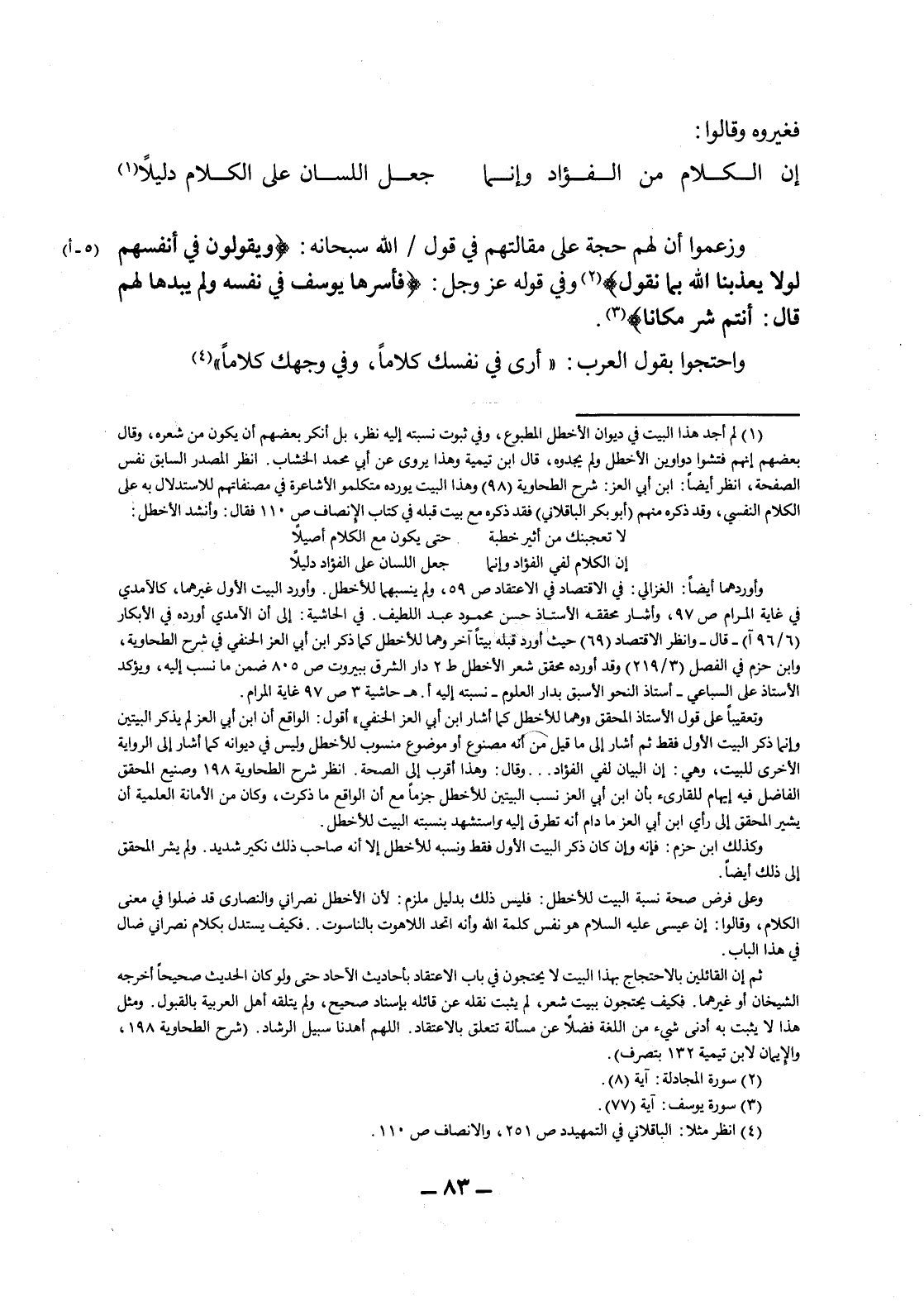 8- ثم تشرحوا أن الذي يزعمون بشاعته من قولنا في الصفات ليس على ما زعموا ومع ذلك فلازم لهم في إثبات الذات مثل ما يلزمون أصحابنا في الصفات.
