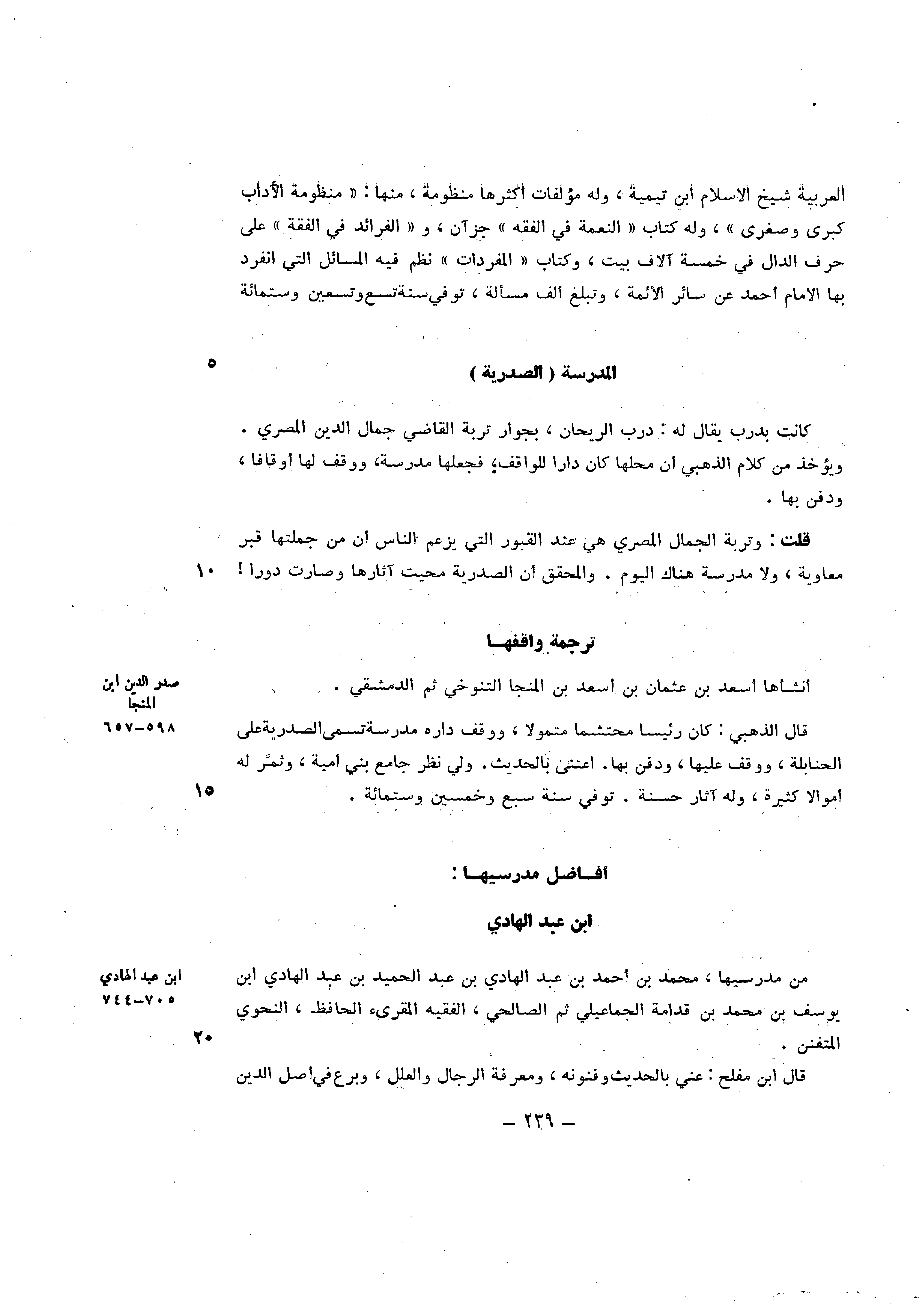أفاضل مدرسيها ابْن عبد الْهَادِي