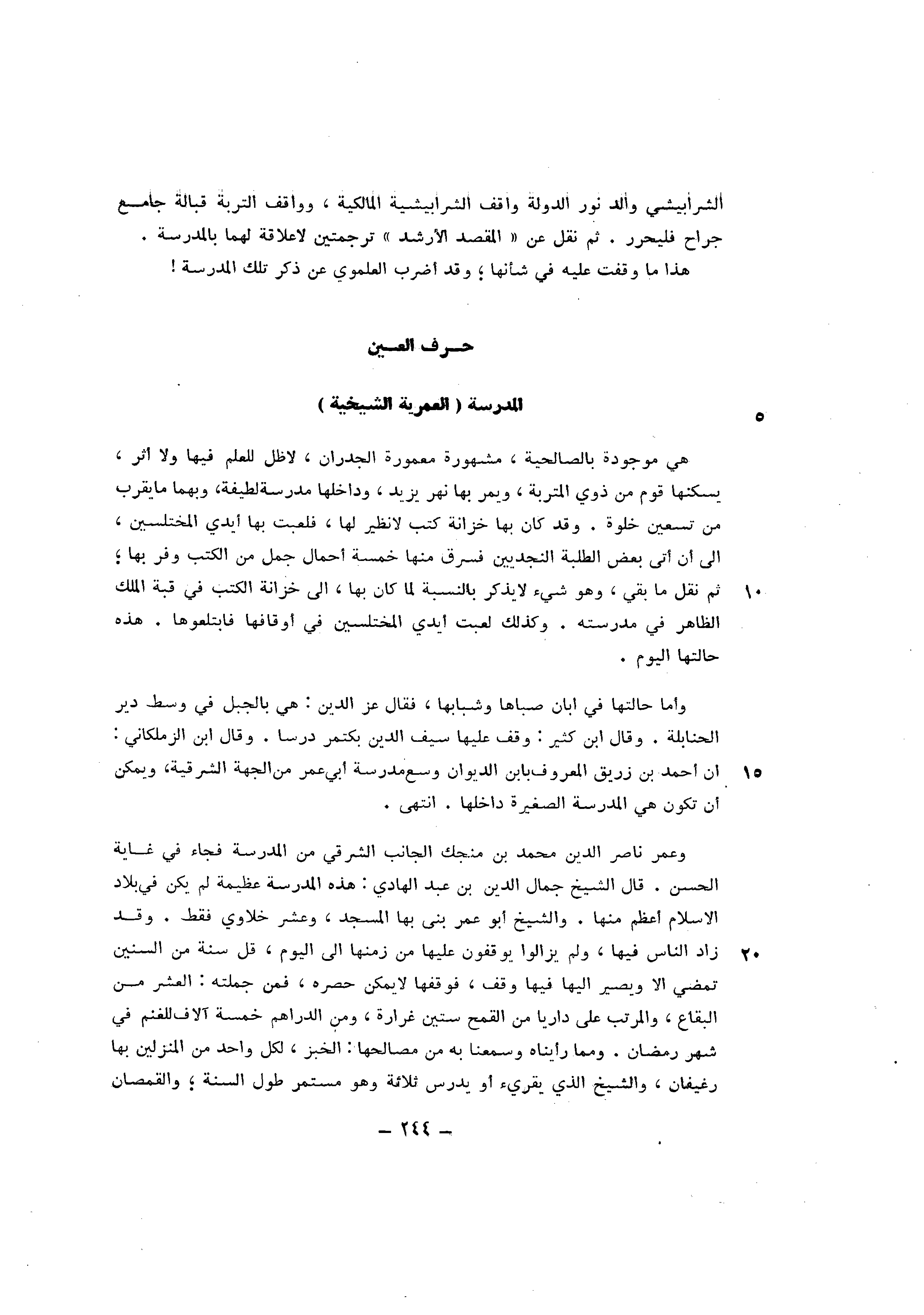 الشرابيشية وَالِد نور الدولة وَاقِف الشارابيشية الْمَالِكِيَّة وواقف التربة قبالة جَامع جراح فَليُحرر ثمَّ نقل عَن الْمَقْصد الأرشد ترجمتين لَا علاقَة لَهما بِالْمَدْرَسَةِ