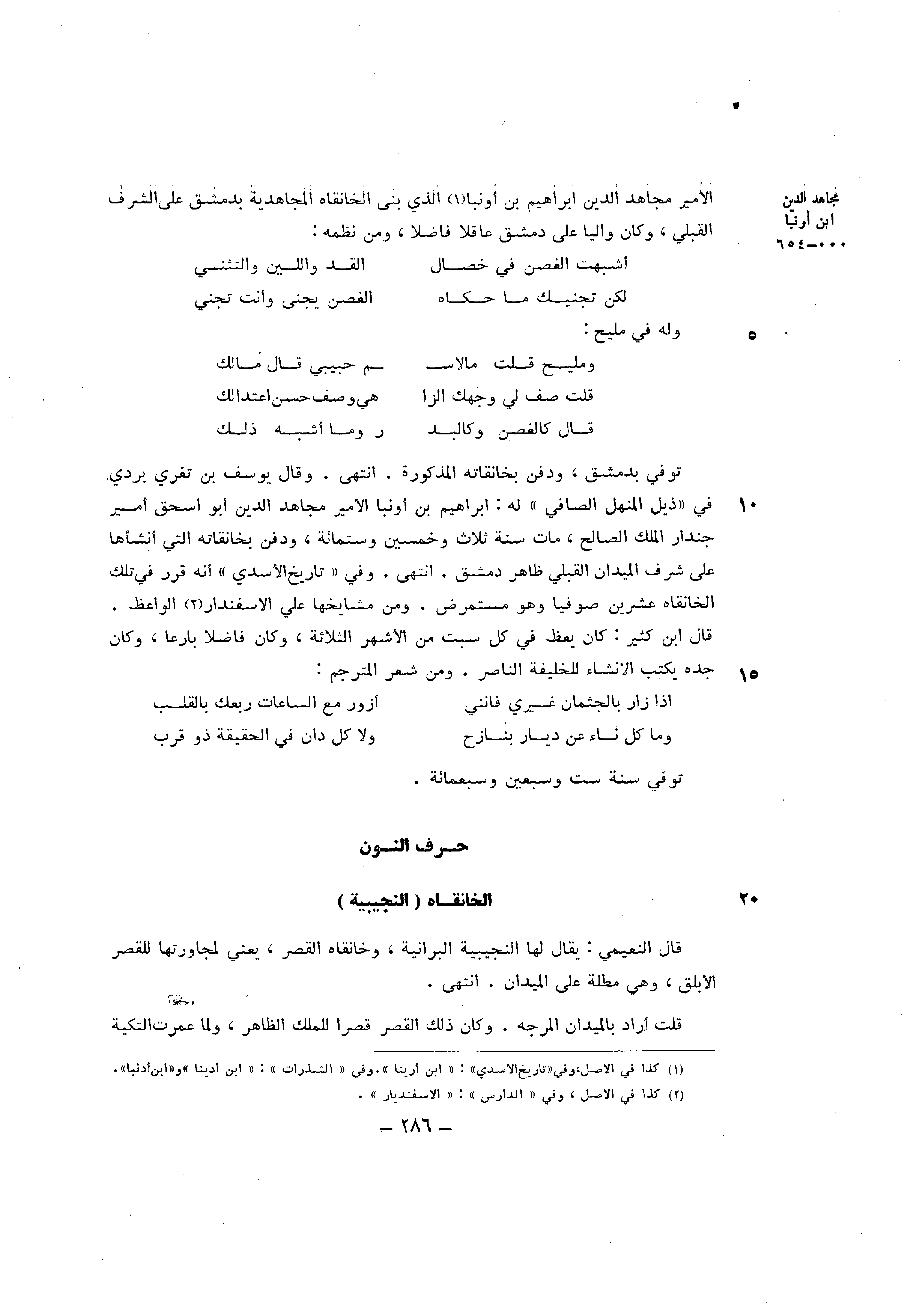 الامير مُجَاهِد الدّين إِبْرَاهِيم بن بنى أونبا الَّذِي بِنَا الخانقاه المجاهدية بِدِمَشْق على الشّرف القبلي وَكَانَ واليا على دمشق عَاقِلا فَاضلا وَمن نظمه