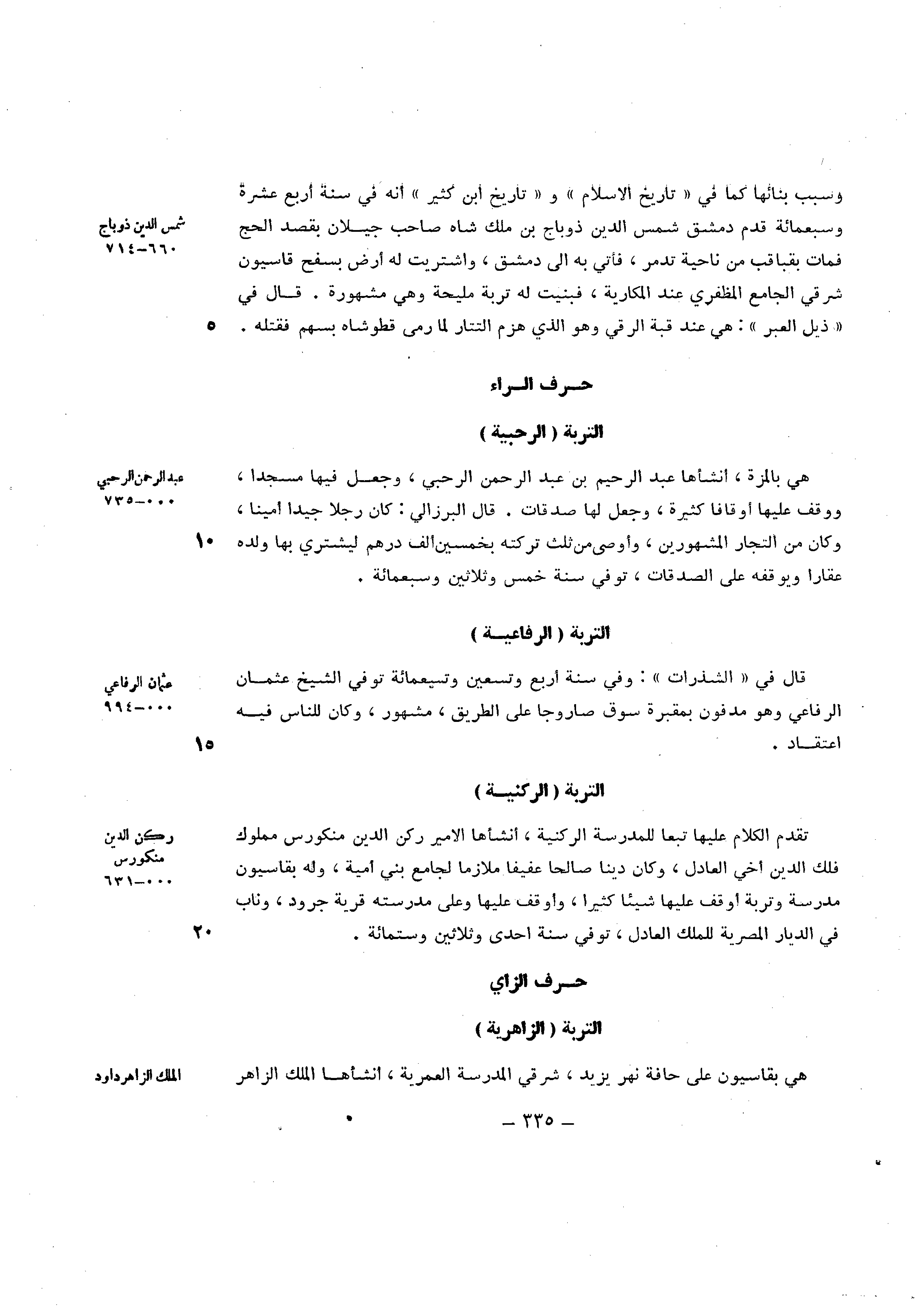 هِيَ بالمزة انشأها عبد الرَّحِيم بن عبد الرَّحْمَن الرَّحبِي وَجعل فِيهَا مَسْجِدا ووقف عَلَيْهَا اوقافا كَثِيرَة وَجعل لَهَا صدقَات قَالَ البرزالي كَانَ رجلا جيدا امينا وَكَانَ من التُّجَّار الْمَشْهُورين واوصى من ثلث تركته بِخَمْسِينَ الف دِرْهَم ليَشْتَرِي بهَا وَلَده عقارا ويوقفه على الصَّدقَات توفّي سنة خمس وَثَلَاثِينَ وَسَبْعمائة
