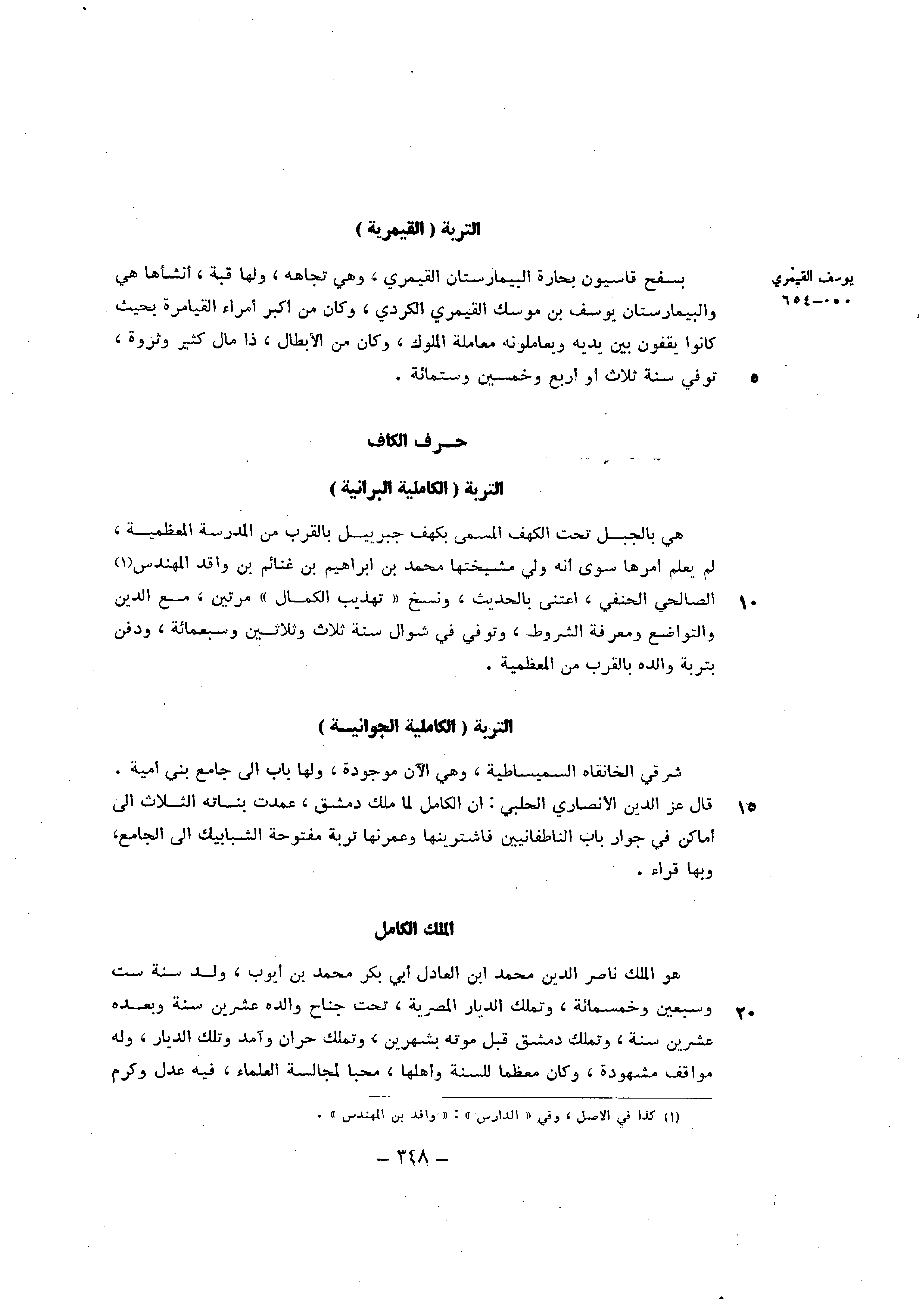 هُوَ الْملك نَاصِر الدّين مُحَمَّد ابْن الْعَادِل أبي بكر مُحَمَّد بن ايوب ولد سنة سِتّ وَسبعين وَخَمْسمِائة وتملك الديار المصرية تَحت جنَاح وَالِده عشْرين سنة وَبعده عشْرين سنة وتملك دمشق قبل مَوته بشهرين وتملك حران وآمد وَتلك الديار وَلَهُم مَوَاقِف مَشْهُودَة وَكَانَ مُعظما للسّنة واهلها محبا لمجالسة الْعلمَاء فِيهِ عدل وكرم