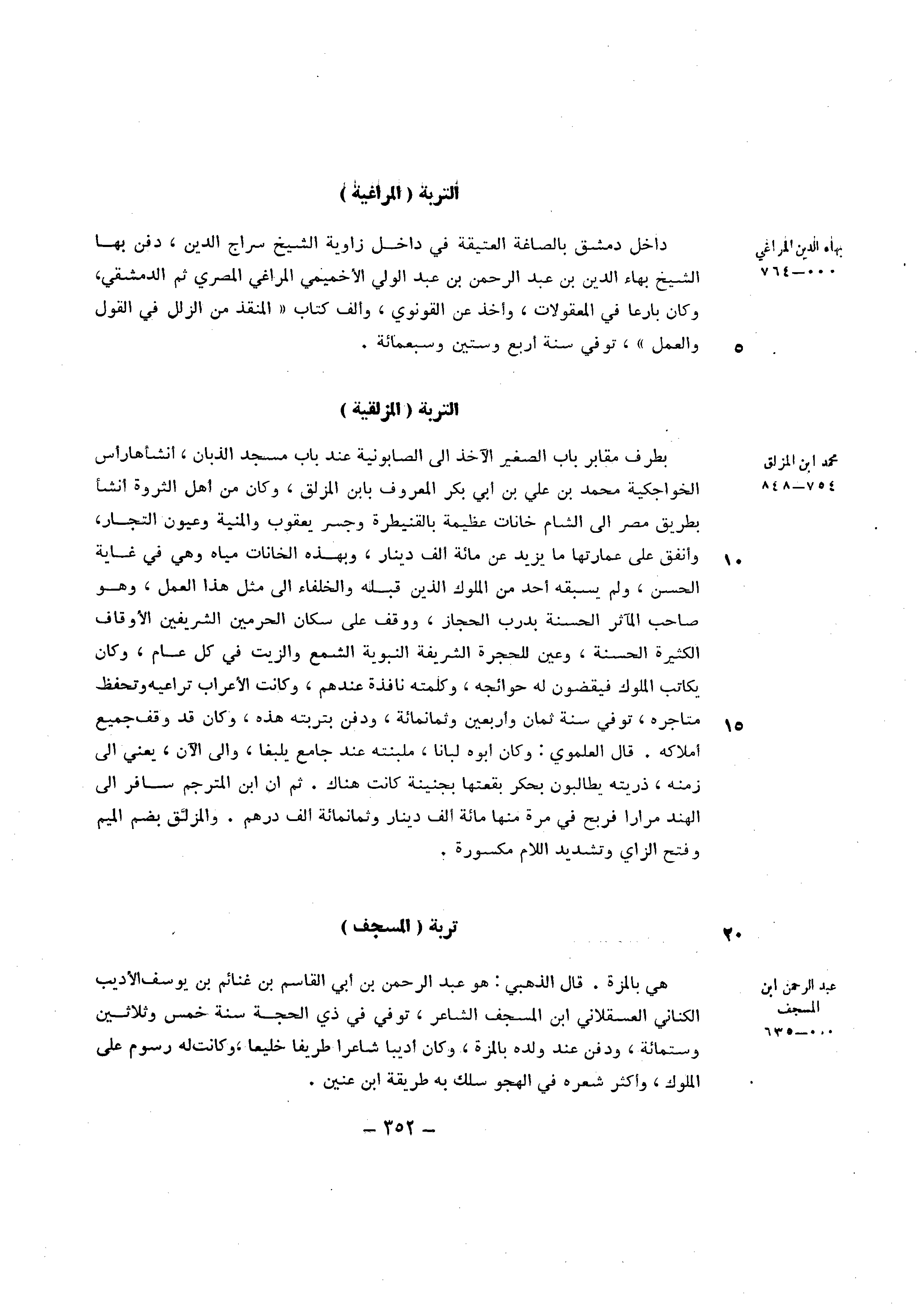 هِيَ بالمزة قَالَ الذَّهَبِيّ هُوَ عبد الرَّحْمَن بن أبي الْقَاسِم بن غَنَائِم بن يُوسُف الاديب الْكِنَانِي الْعَسْقَلَانِي ابْن المسجف الشَّاعِر توفّي فِي ذِي الْحجَّة سنة خمس وَثَلَاثِينَ وسِتمِائَة وَدفن عِنْد وَلَده بالمزة وَكَانَ أديبا شَاعِرًا طريفا خليعا وَكَانَت لَهُ رسوم على الْمُلُوك واكثر شعره فِي الهجو سلك بِهِ طَريقَة ابْن عنين