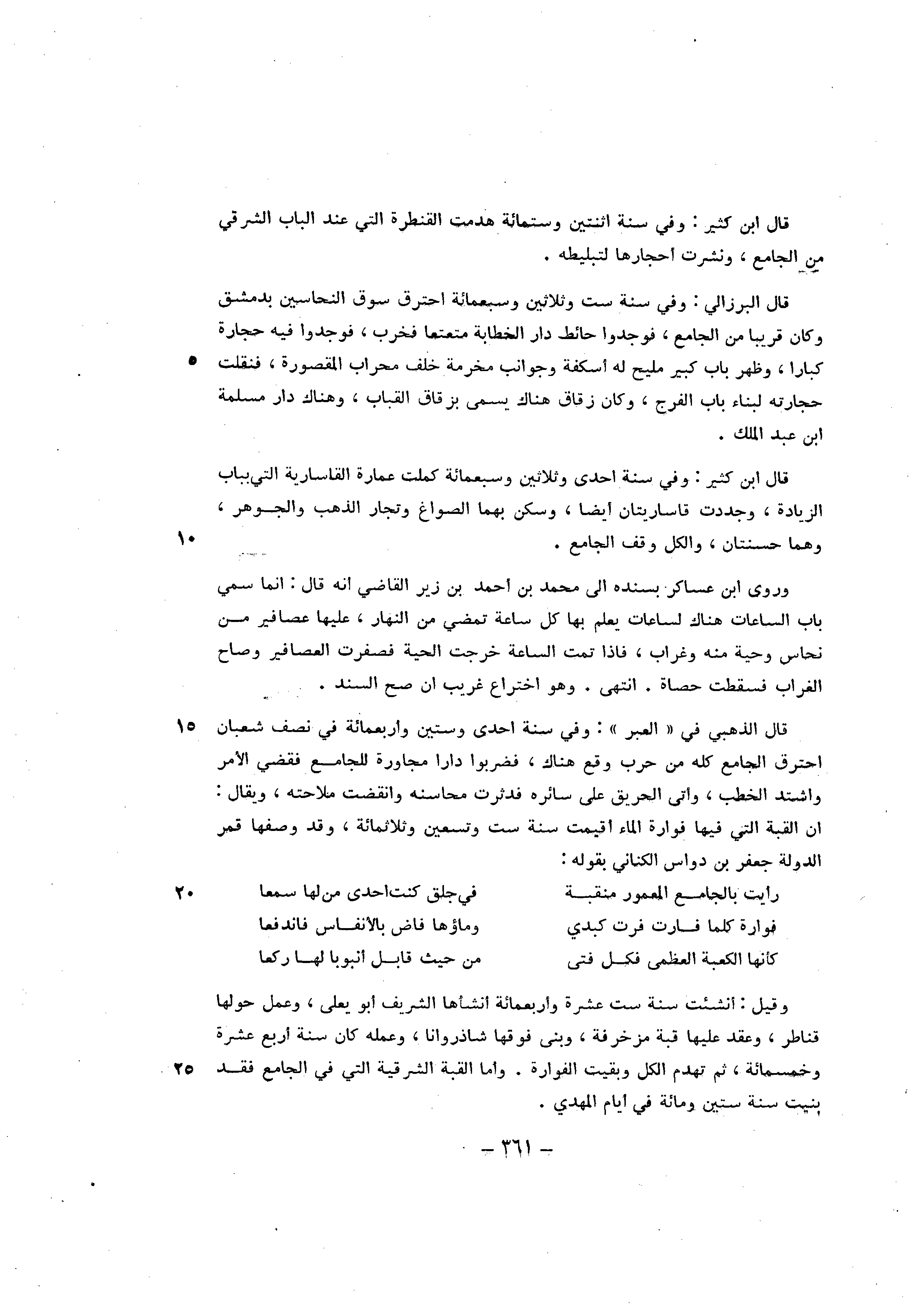 قَالَ ابْن كثير وَفِي سنة اثْنَتَيْنِ وسِتمِائَة هدمت القنطرة الَّتِي عِنْد الْبَاب الشَّرْقِي من الْجَامِع ونشرت احجارها لتبليطه