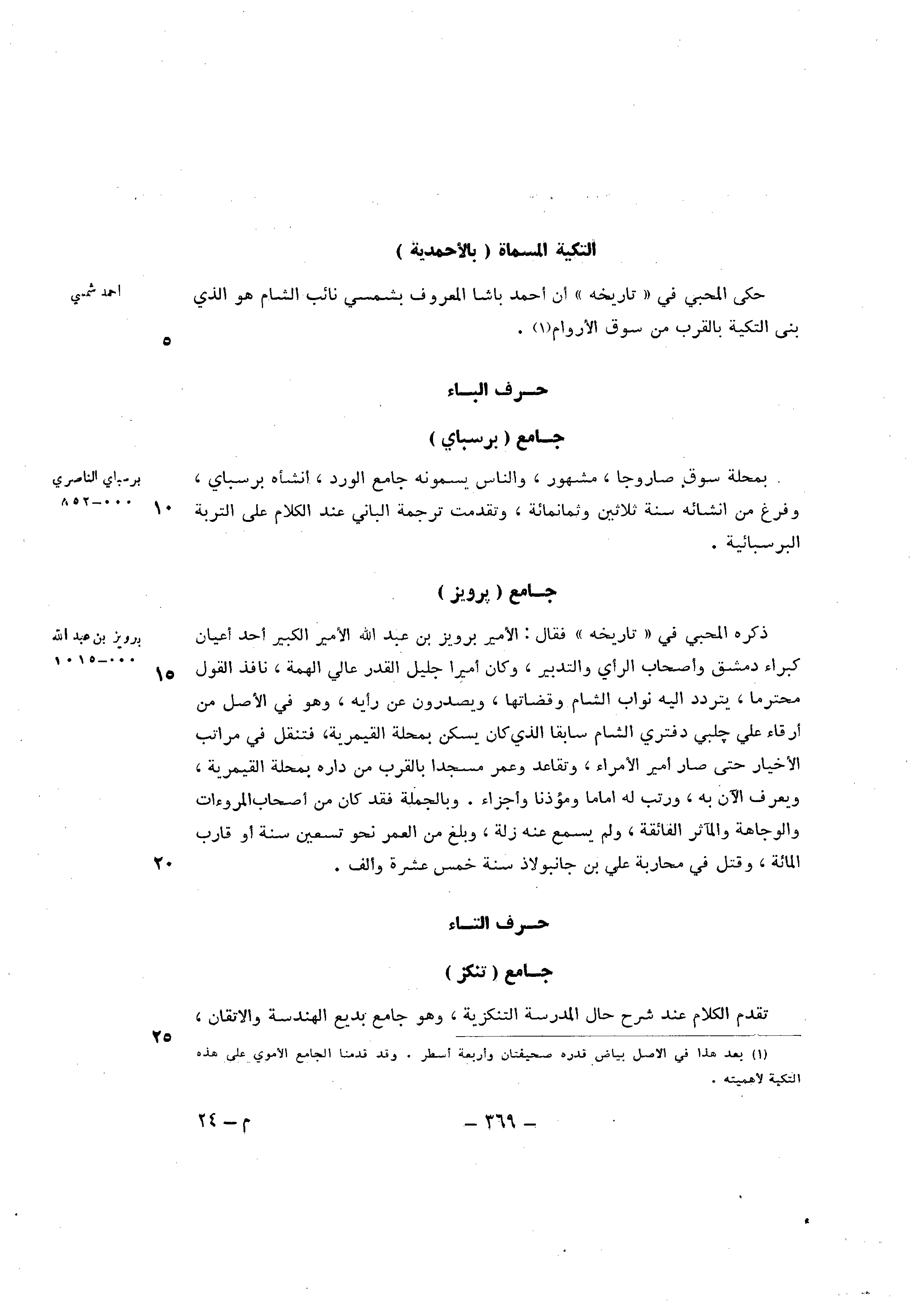 تقدم الْكَلَام عِنْد شرح حَال الْمدرسَة التنكزية وَهُوَ جَامع بديع الهندسة والاتقان