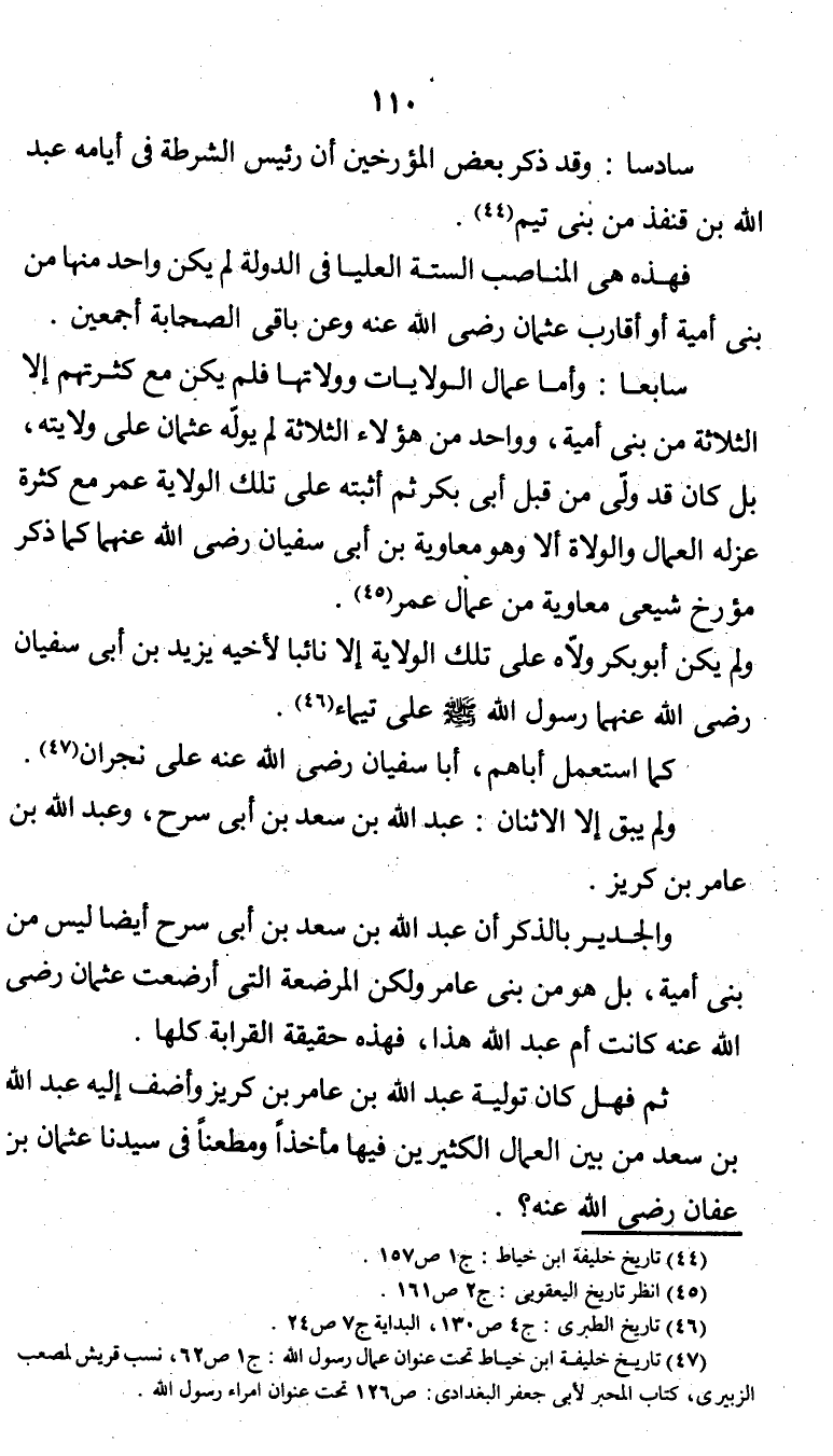 فهذه هي المناصب الستة العليا في الدولة لم يكن واحد منها من بني أمية أو أقارب عثمان رضي الله عنه وعن باقي الصحابة أجمعين.