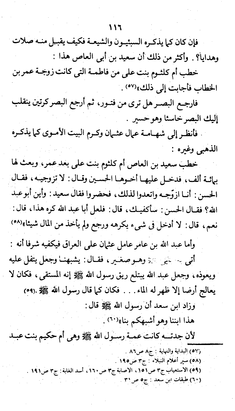 "فإن كان كما يذكره السبئيون والشيعة فكيف يقبل منه صلات وهدايا؟. وأكثر من ذلك أن سعيد بن أبي العاص هذا: