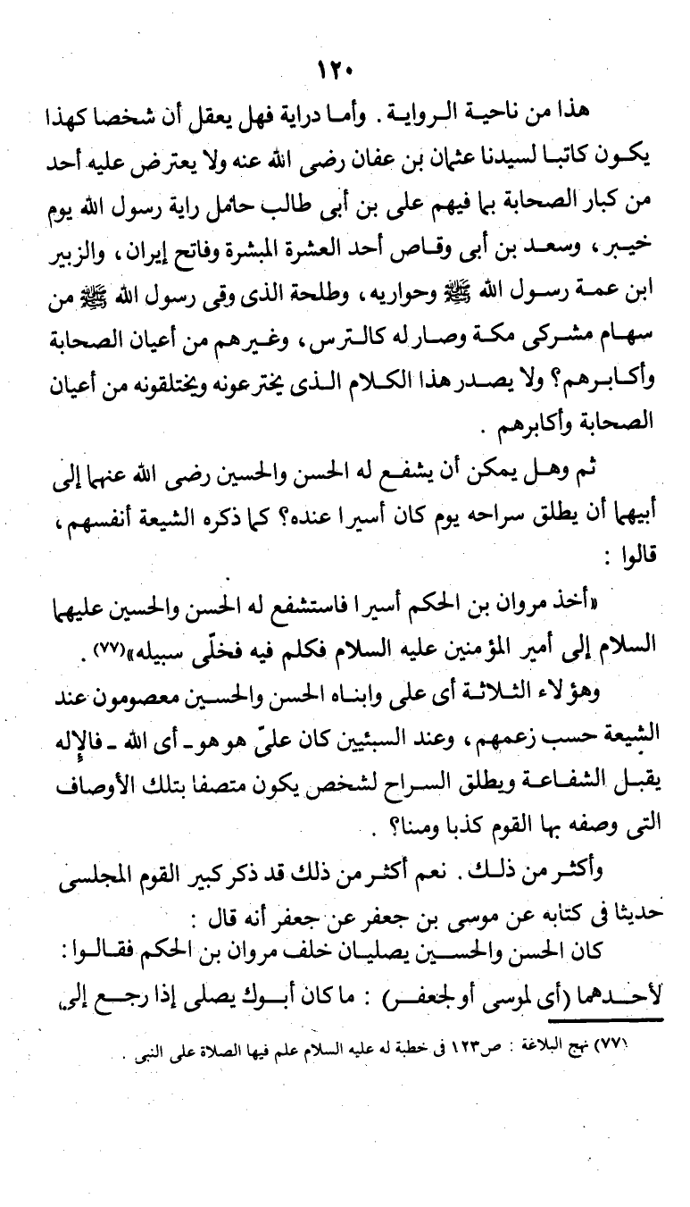 ثم وهل يمكن أن يشفع له الحسن والحسين رضي الله عنهما إلى أبيهما أن يطلق سراحه يوم كان أسيرًا عنده؟ كما ذكره الشيعة أنفسهم، قالوا: