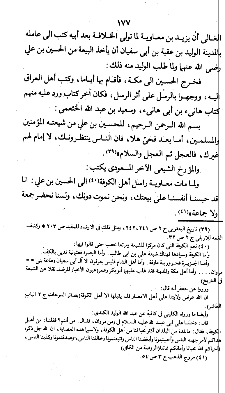 "ولما مات معاوية راسل أهل الكوفة " (¬2) " إلى الحسين بن علي: "أن قد حبسنا أنفسنا على بيعتك، ونحن نموت دونك، ولسنا نحضر جمعة ولا جماعة" (¬3) ".