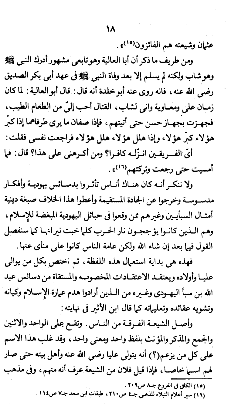 فهذه هي بداية استعمال هذه اللفظة ثم اختص بكل من يوالي علياً وأولاده ويعتقد الاعتقادات المخصوصة والمستقاة من دسائس عبد الله بن سبأ اليهودي وغيره من الذين أرادوا هدم عمارة الإسلام وكيانه وتشويه عقائده وتعليماته كما قال ابن الأثير في نهايته:
