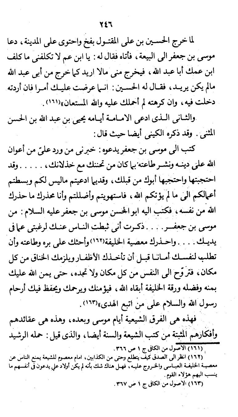 (¬2) أنظر إلى الصدق كيف يتطلع وحتى من الكذابين، إمام معصوم للشيعة يمنع الناس عن معصية الخليفة العباسي والخروج عليه، فهل هناك شك بأنه لم يكن أولاد علي يدعون في أنفسهم ما ينسب إليهم هؤلاء القوم.