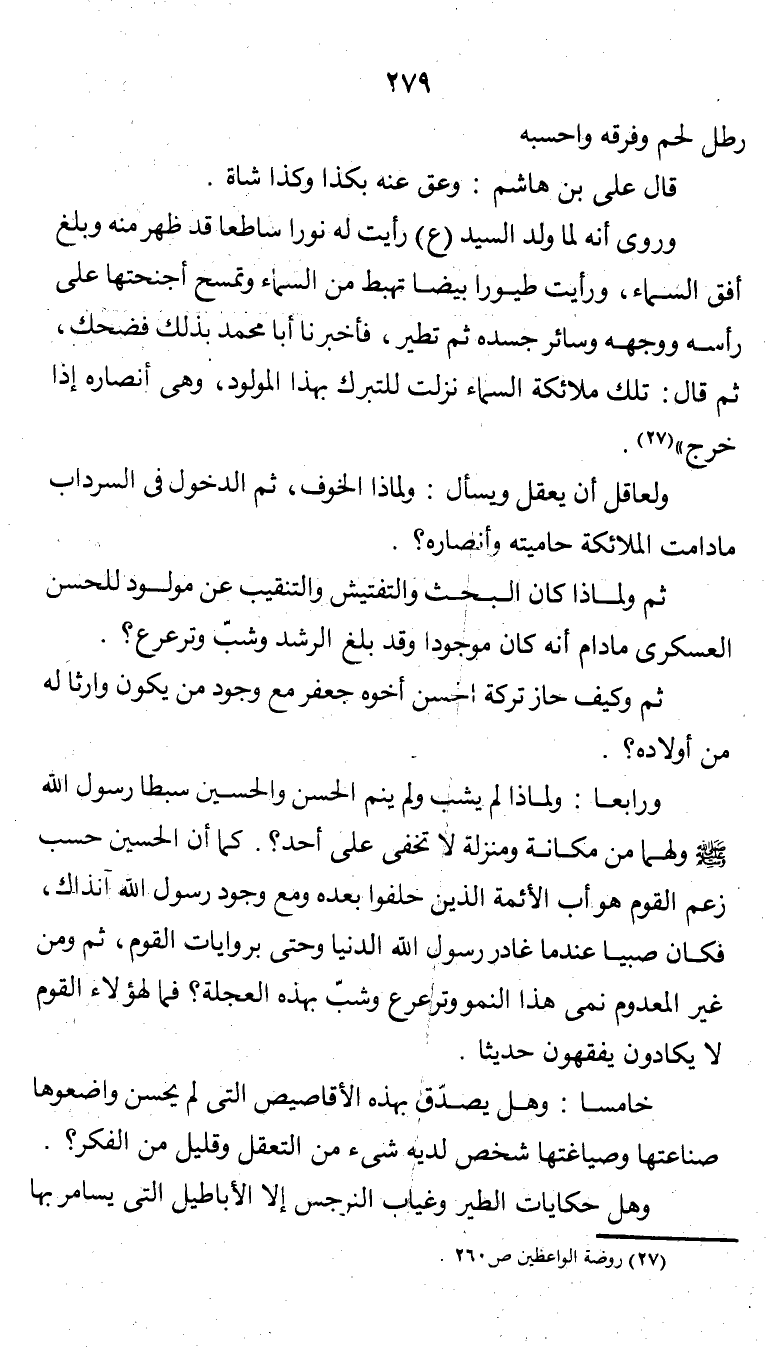 خامساً: وهل يصدّق بهذه الأقاصيص التي لم يحسن واضعوها صناعتها وصياغتها شخص لديه شىء من التعقل وقليل من الفكر؟.