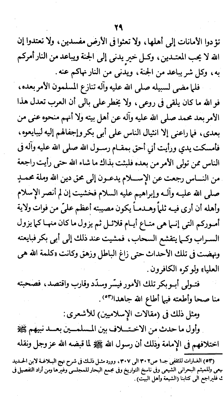 (¬1) - الغارات للثقفي ج1ص302 - 307 وورد مثل ذلك في شرح نهج البلاغة لابن الحديد الشيعي والميثم البحراني الشيعي وفي ناسخ التواريخ وفي مجمع البحار للمجلسي وغيرها ومن أراد التفصيل في ذلك فليرجع إلى كتابنا ... (الشيعة وأهل البيت).