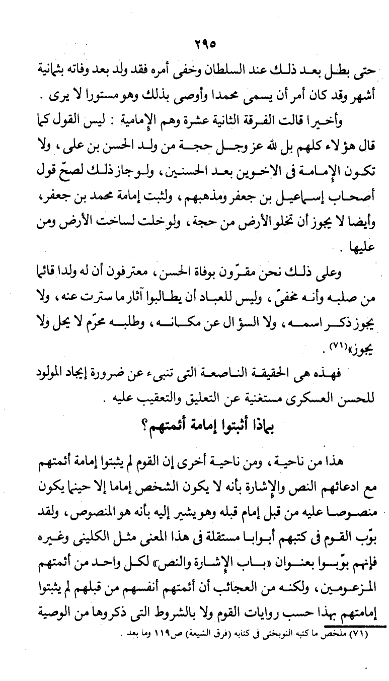 ْفهذه هي الحقيقة الناصعة التي تنبىء عن ضرورة إيجاد المولود للحسن العسكري مستغنية عن التعليق والتعقيب عليه.