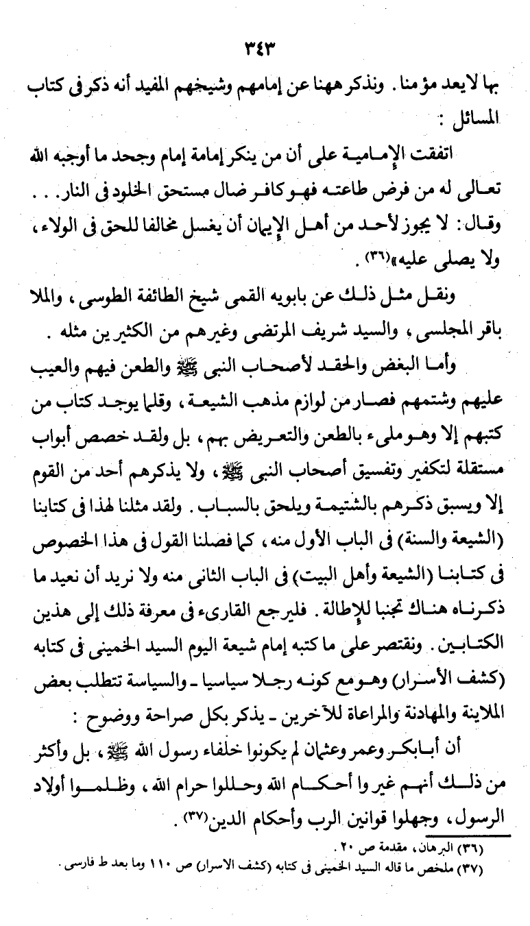 ونقتصر على ما كتبه إمام شيعة اليوم السيد الخميني في كتابه (كشف الأسرار).