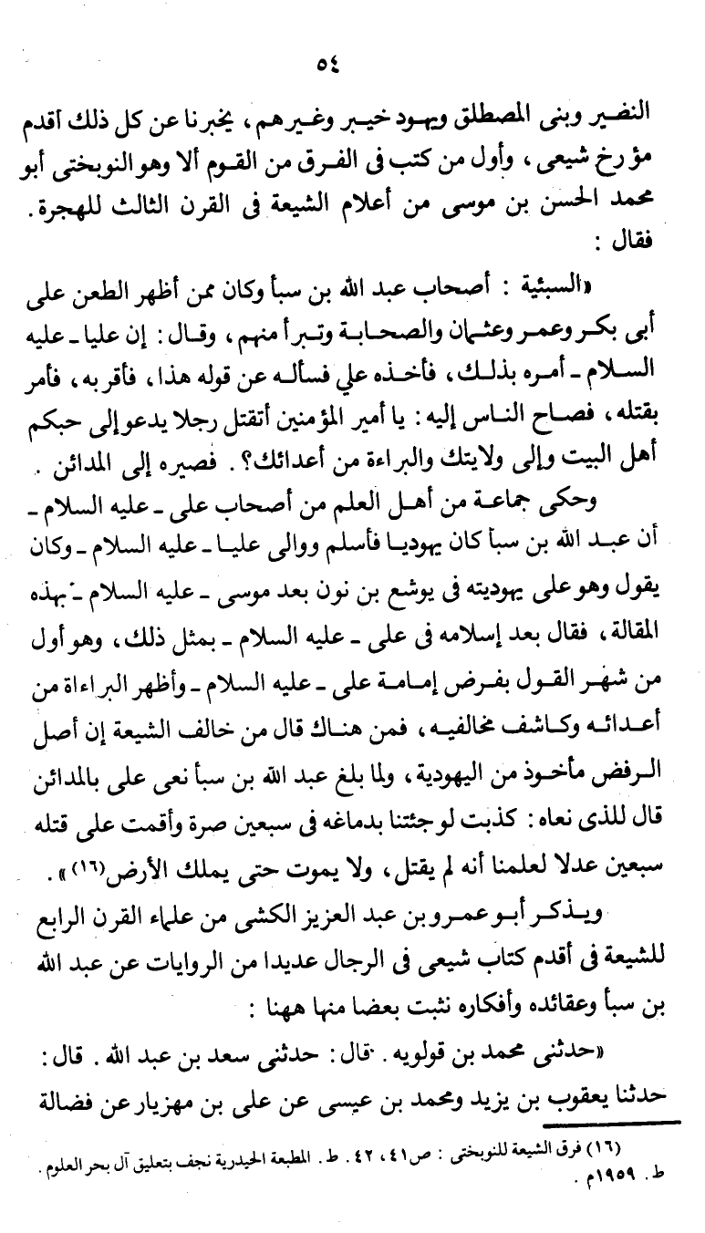 (¬1) - فرق الشيعة للنوبختي ص 41، 42 ط المطبعة الحيدرية نجف بتعليق آل بحر العلوم ط 1959م.