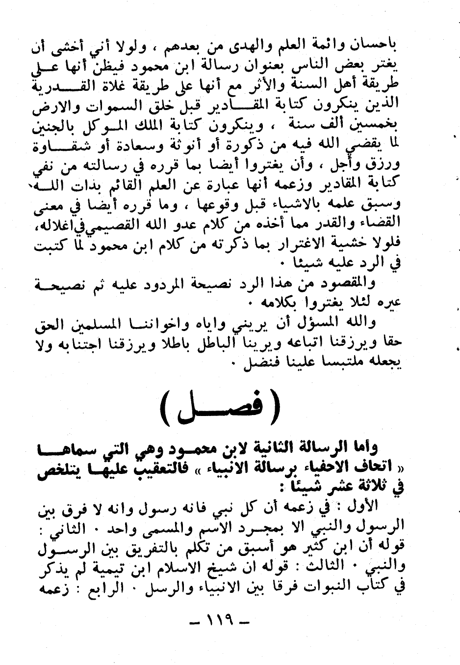 وأما الرسالة الثانية لابن محمود وهي التي سماها (إتحاف الأحفياء برسالة الأنبياء) فالتعقيب عليها يتلخص في ثلاثة عشر شيئا:
